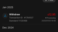 我目前交易于 IUX。然而我存了币,提现的时候却没有币了,只好去银行提现,但是24小时过去了,还是没有看到钱转账。在消息通知面板中,我看到它正在审核中,但仍然收到等待请求。我感到很困惑,不知道从2024年12月9日晚上9点提现时间到今天2024年12月11日,我仍然看到状态正在审核中。期待获得支持