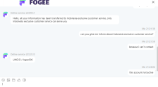 我今天10月29日上午10点左右刚投入新台币50万元入金fogee平台,投资股票群组洪天峰老师推荐外汇交易及智能量化交易,助理陈蔓玲winny叫我30分钟内汇款,我转进去确认已收到该款项,今天MT5也开始交易外汇 ,有一笔交易也离场(赚钱),晚上助理通知我fogee平台承兑商出了问题,没有收到该款项,也请洪老师说明,说平台出了问题,每周二、四、日晚上8点都会有语音授课(三国及智能量化)、周一、三、五也会有另一个老师上课,老师也跟我说平台有考察过(一再跟我资金出入金没问题,11月底会成立公司博取信任)。结果我钱转进去新台币50万,说没有收到该款项,他学员这麽多,我不相信他名誉不会受损,我也是旧学员,我也有加入智能量化(vipotor外汇平台),结果不到一周我的帐号被盗用,後来被盗用注销,很恐怖的是从脸书、line群组加入,分享智能交易收益稳定,结果两个投资、智能量化跟外汇,我竟然都遇到诈骗,50万赶快归还给我,我不相信这50万对洪老师名誉不会受损,之後不用推广,还叫我直接去报案冻结该帐户,洪天峰老师(助理都是美女假照包含蔓玲、琳娜,雨霏)应该都是诈骗集团 ,非常扯,希望不要再有人受骗了
