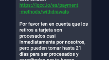 我从我的账户提款,21 天的截止日期已过,但我什么也没收到。问题是我的钱在哪里,因为它们很容易收到,但提取我们自己的钱却不是。