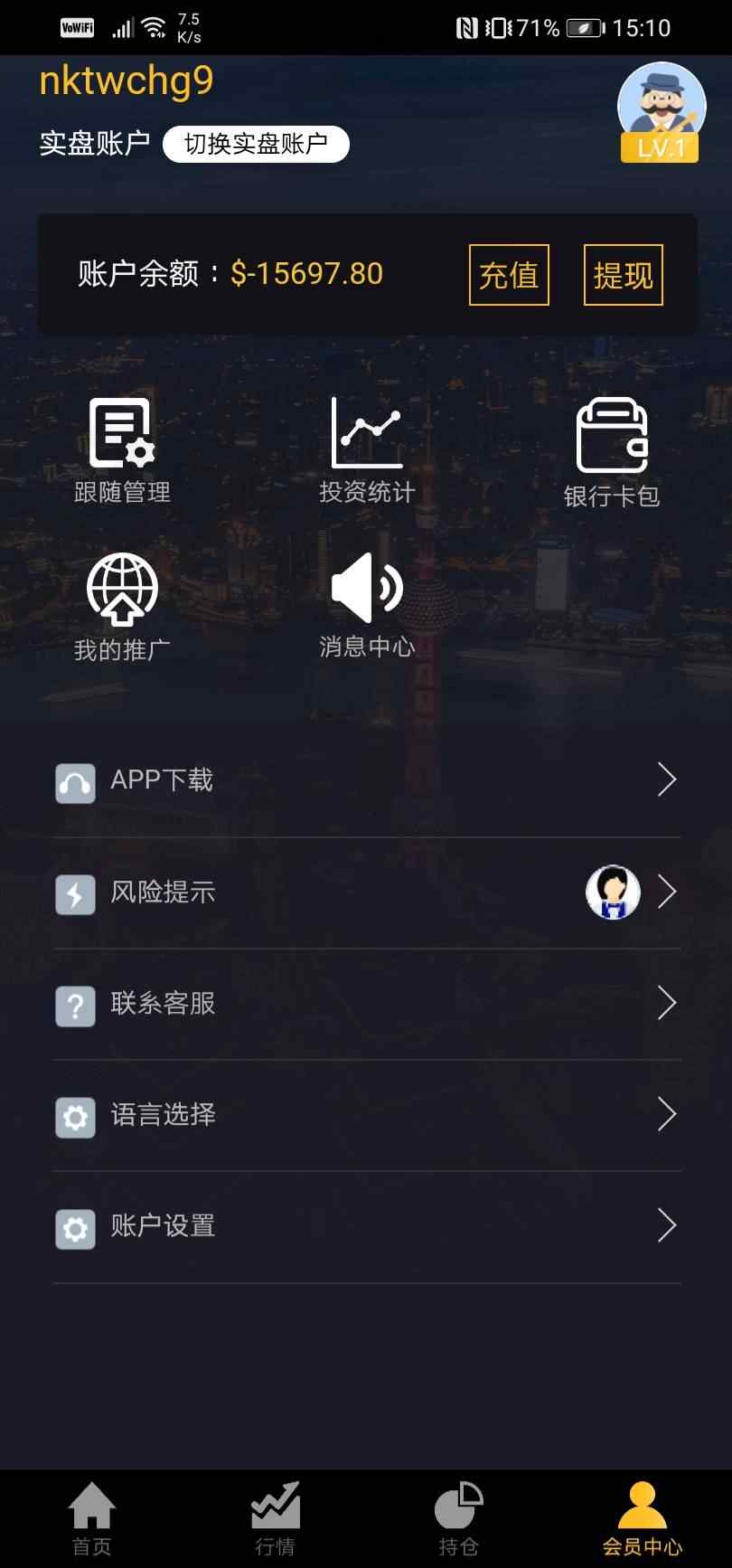 提取资金。亏损并要求取回资金
