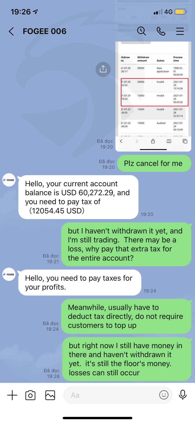 提款需缴纳 20% 的新个人所得税。不同意直接从提款中扣除。有明显的欺诈迹象。需要支付30%的风险管理费(支付$3800)