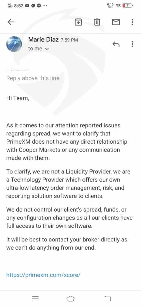 我亏了所有余额,他们故意让我爆仓。如果是重大事件,我不会投诉他们。在滑点期间,只有该品台的价格降低,我设置了止损和止盈,但头寸还是跌了,其他人也遇到了这样的问题,我问客服为什么会这样,他们把责任推给了供应商。我又发邮件问了两家交易商,他们说从没和他们合作过。