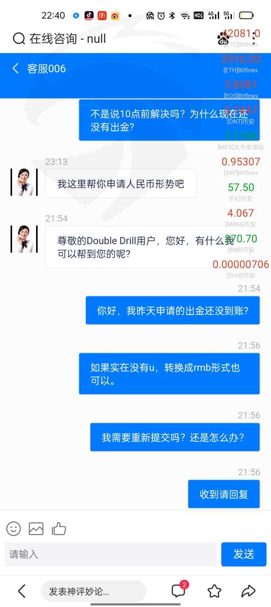 DOUBLE DRILL 骗子平台,杀猪盘,无法出金。客服不理人,一直拖延时间,无法出金