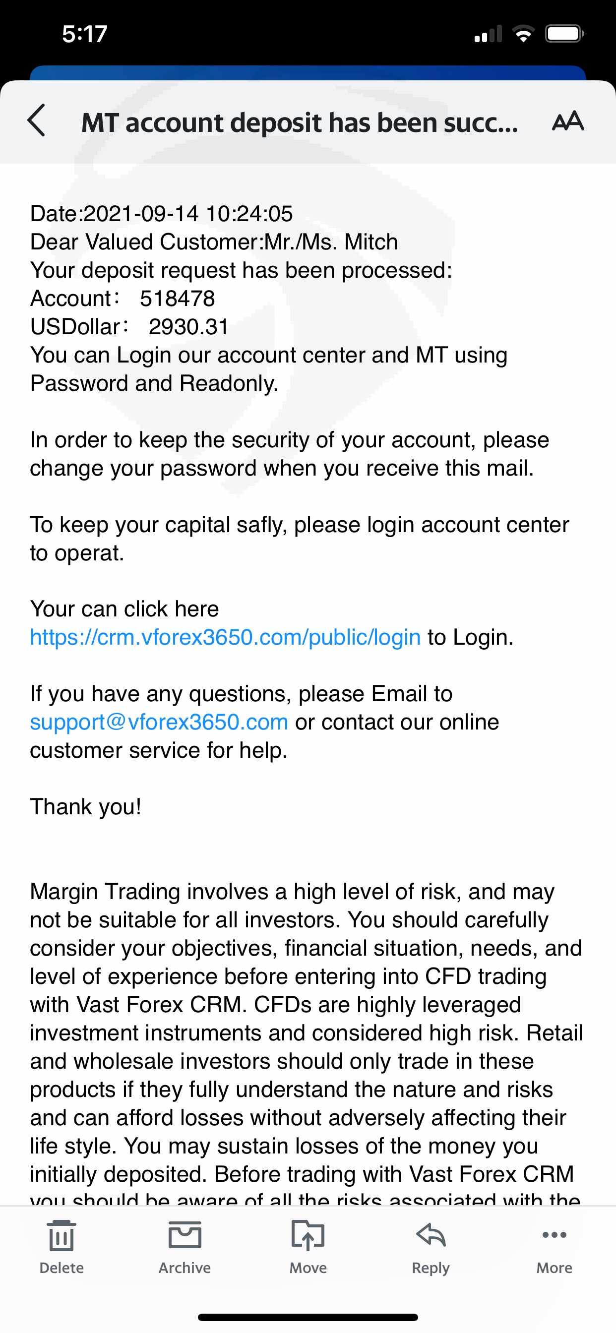 This brokerage firm is Scam! Please report Vast Forex! I can’t withdraw my funds from my MT5 account! Customer service said, I need to pay Verification fee, After I paid the verification fee, they are asked me again to pay Philippine Tax fee, Currency fee, etc etc. but Until now, I can’t withdraw all my funds. I really need my hard earned money. please if someone help me to get my money back, please help me. I really have no savings right now 😭😭