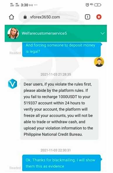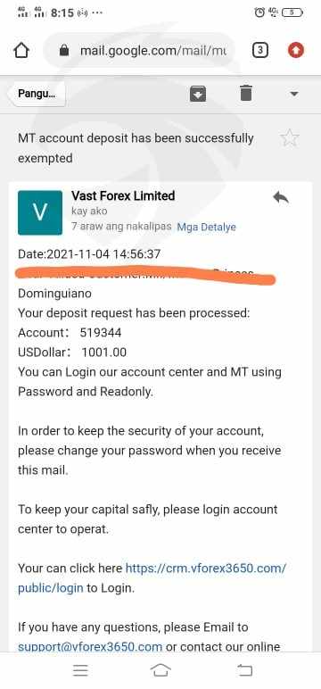 我通过约会网站被招募加入 Vast Forex,他们说服我投资,教我何时购买和关闭。当我试图取款 100 时,客服从Vast ForexLimited 要求我存入 1,000 美元才能提款,他们勒索我,说他们会向菲律宾信用协会举报我或冻结我的账户。所以我确实存入了 1,001 美元。我能够成功提取100。当我再次尝试取款时,Vast Forex Limited 的客服要求我存入1,000 美元,以便再次取款。这一次,我拒绝了,因为这已经很明显是一个骗局。我损失了约 11,000 美元。第一次损失是 4,000 美元,我账户里的钱是 7,245 美元。我试图提取 1,100,但被拒绝了。我在 Forex Groups 发布我的经历,许多受害者与我联系。他们被相同的骗局骗了。