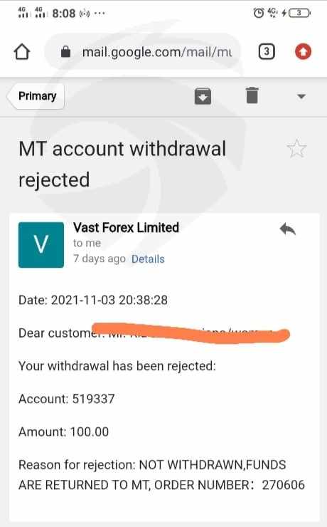 successfully. When I tried to withdraw again, the customer service from Vast