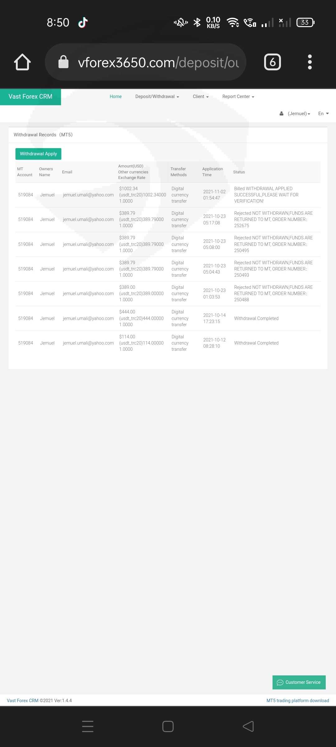 我的账户上还剩 386 美元。当我试图取款时,被告知要存更多的钱,并将总资金增加到 1000 美元才能成功取款。在我要求提款后,又存入了 614。已经13天了,他们没有回复。我发过几封电子邮件,并在他们的客户服务上留下了大量消息,但仍然没有回复。有人能帮助我吗?