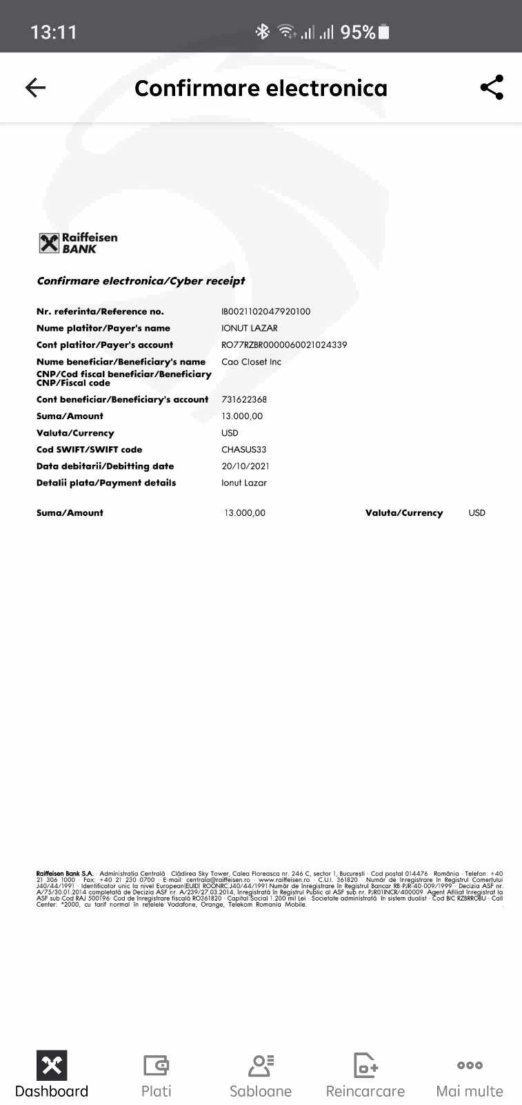 a amount of 33.000 USD payment in 2 separate payments ( 20.000 USD and 13.000