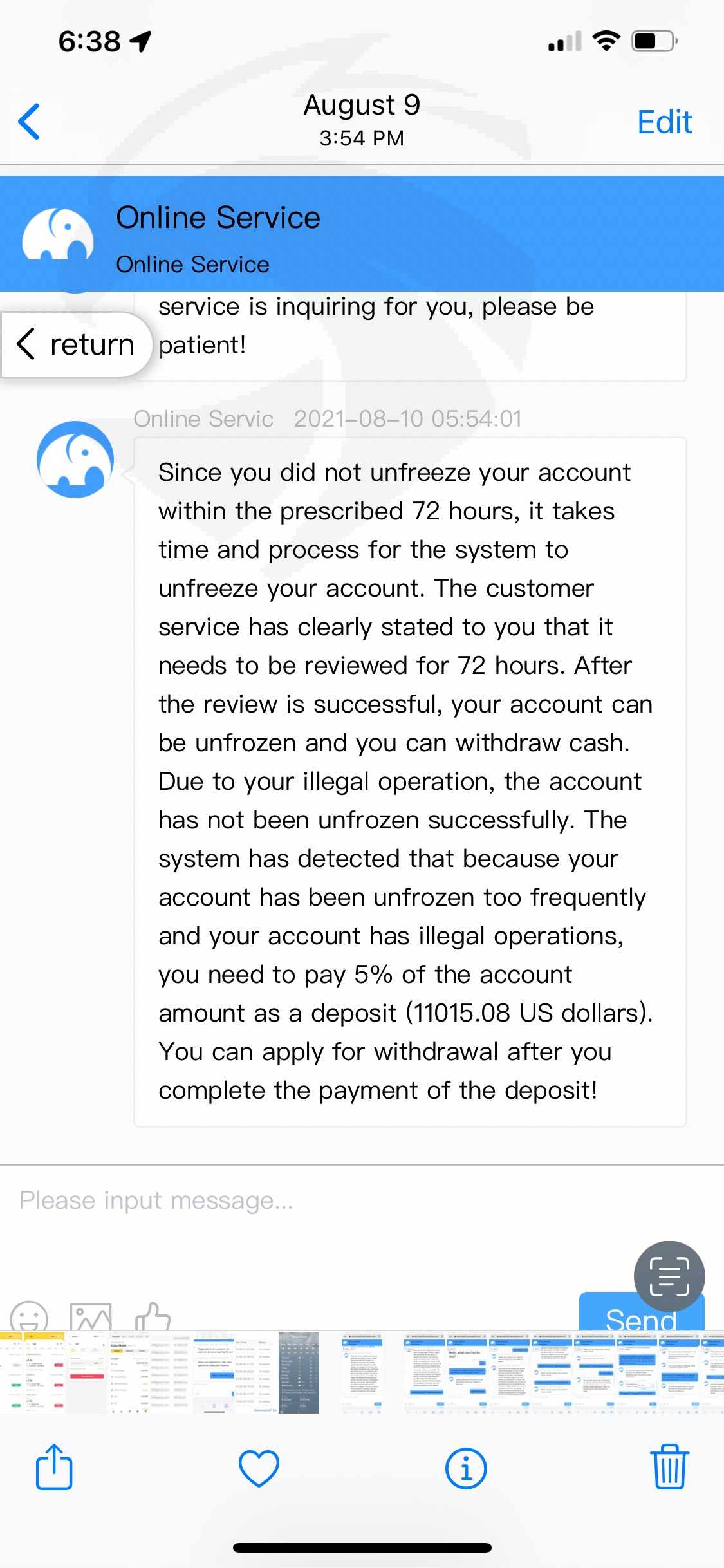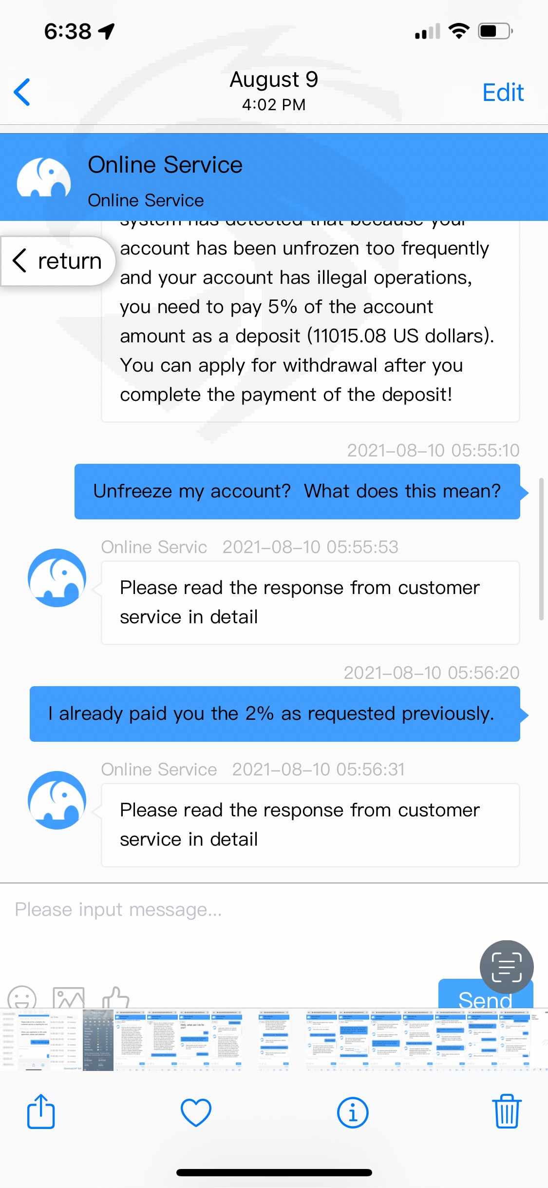 the screenshots say it all. fake fees to be paid in Crypto prior to “withdraw”. legitimate brokers would acknowledge the $220k balance and if there were fees to be paid, subtract the fees from the balance. however UK DoubleDrill is a fake broker so there is no real money. they make “demo” accounts look real. “XAUUSD.d” <- doesn’t that small “d” indicate demo? basically they steal your deposit and make it easy for you to build up your “profit” and get excited. I actually thought I was rich 🤪🤪
