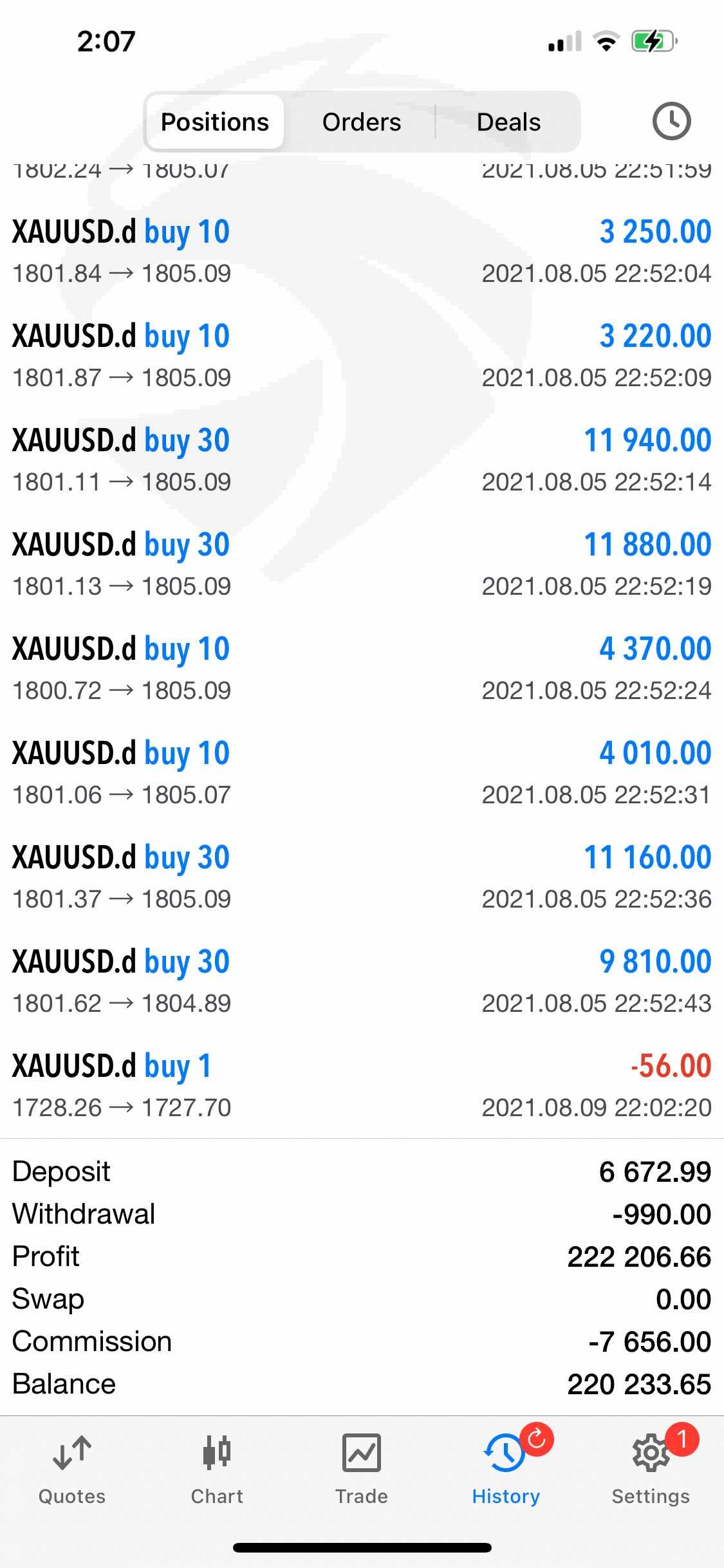 截图说明了一切。在“提款”之前以加密货币支付虚假的费用。合法交易商会确认 22 万美元的余额,如果需要支付费用话,会从余额中减去。但是 UK DoubleDrill 是一个假交易商,所以他们没有真钱。它们使“模拟”帐户看起来真实。 “XAUUSD.d” <- 那个小“d”不是表示模拟吗?基本上,他们窃取了你的资金,让你轻松获得“利润”并感到兴奋。我真的以为我很有钱