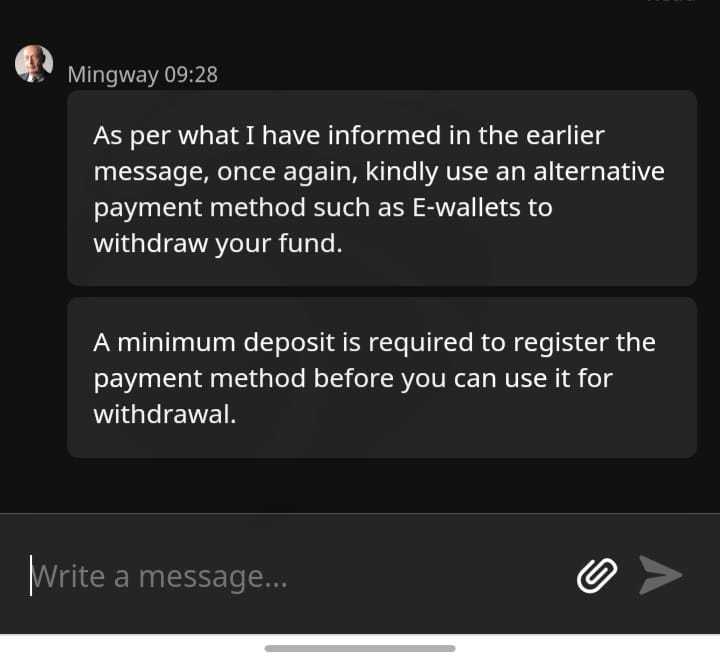 我不知道这个交易商有什么问题,一开始他们允许我提现,但是在我存了很多钱和交易之后,我多次申请提现,但他们一直拒绝,这完全是错的!
