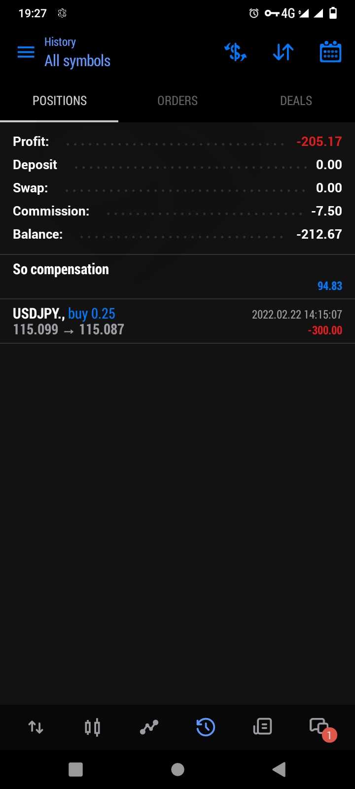 完完全全的欺骗了我,300倍杠杆,0.25手,7.5美金的佣金,在JPYUSD及波动仅为0.012点的情况下损失300美元,