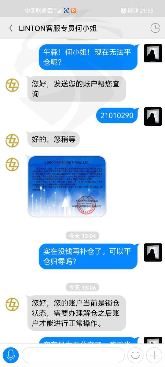 各种诱骗他人在入金。现在林顿简讯,官网都进不去,一个人都找不到。骗取他人信任操作账号,故意做最大对冲锁仓交保证金入金。以降低点差的方式骗他人入金。