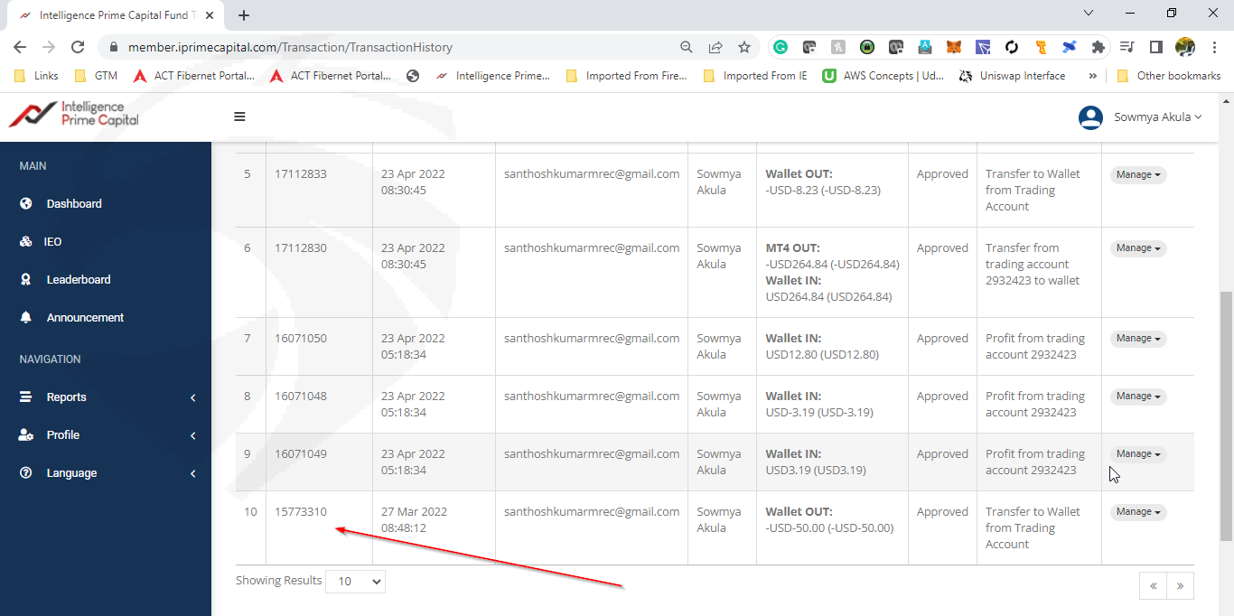 嗨团队,网站:https://iprimecapital.com 用户名:santhoshkumarmrec@gmail.com 公司承诺每周进行 5 天的外汇交易,并将在每个周末周六和周日提供利润和 80% 的资本投资作为提款。我有2个钱包,USDT钱包和MT4钱包。 USDT 钱包 - 用于存入 USDT 加密货币和提取 USDT 加密货币。 MT4 钱包 - 这是将用于外汇交易的资本投资。 2022 年 3 月 27 日,我已将 50 USDT 从 MT4 钱包转移到 USDT 钱包。该公司没有将这 50 USDT 转移到 USDT 钱包并停止提款。这是证明 1 的屏幕截图。从 2022 年 3 月 28 日起,公司改变了转换为加密交易而非外汇交易的决定。也停止了各种提款。现在他们已将 2 个钱包重命名为 IUSD 钱包和 IPC Token 钱包。目前我的 IUSD 钱包里有 348.06 USDT。这是证明2,截图。公司停止了所有提款。如上所述,他们从未退还 50 USDT。所以公司禁止了我的提现 348.06 USDT + 50 USDT。