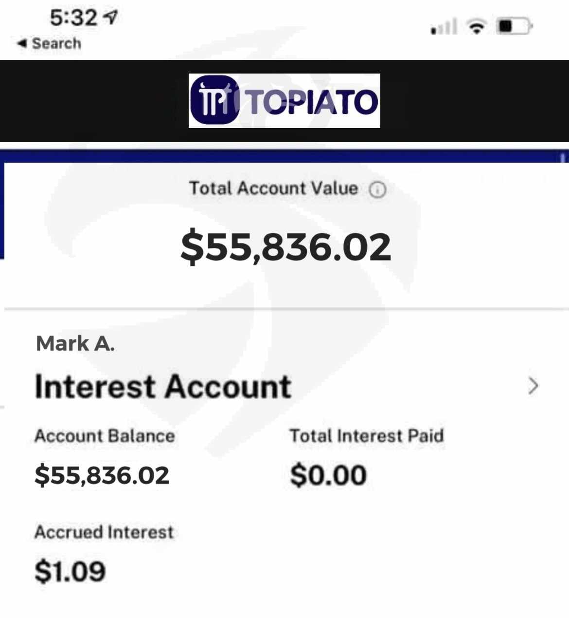 Firstly, demanded $5,000 for account activation. Secondly, demanded a one-time payment, 10% of account balance to make withdrawals. All upfront payments, Our money kept getting stuck , very incomprehensible of them to initially say the payments cannot be collected from my account balance. TOPIATO is definitely a fraud.