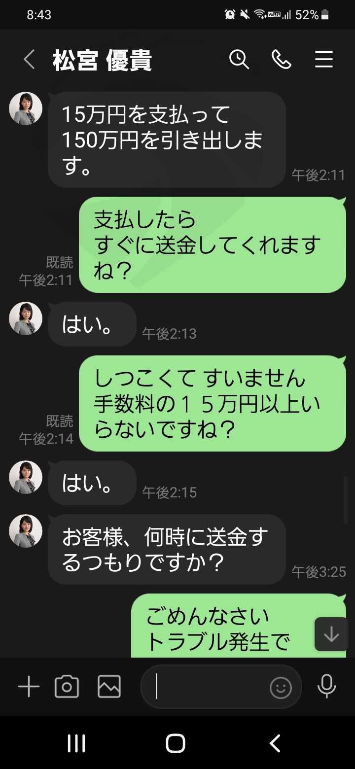 5月24日汇款手续费15万日元,多次确认可以取款,但是被告知不能汇款,所以很麻烦。