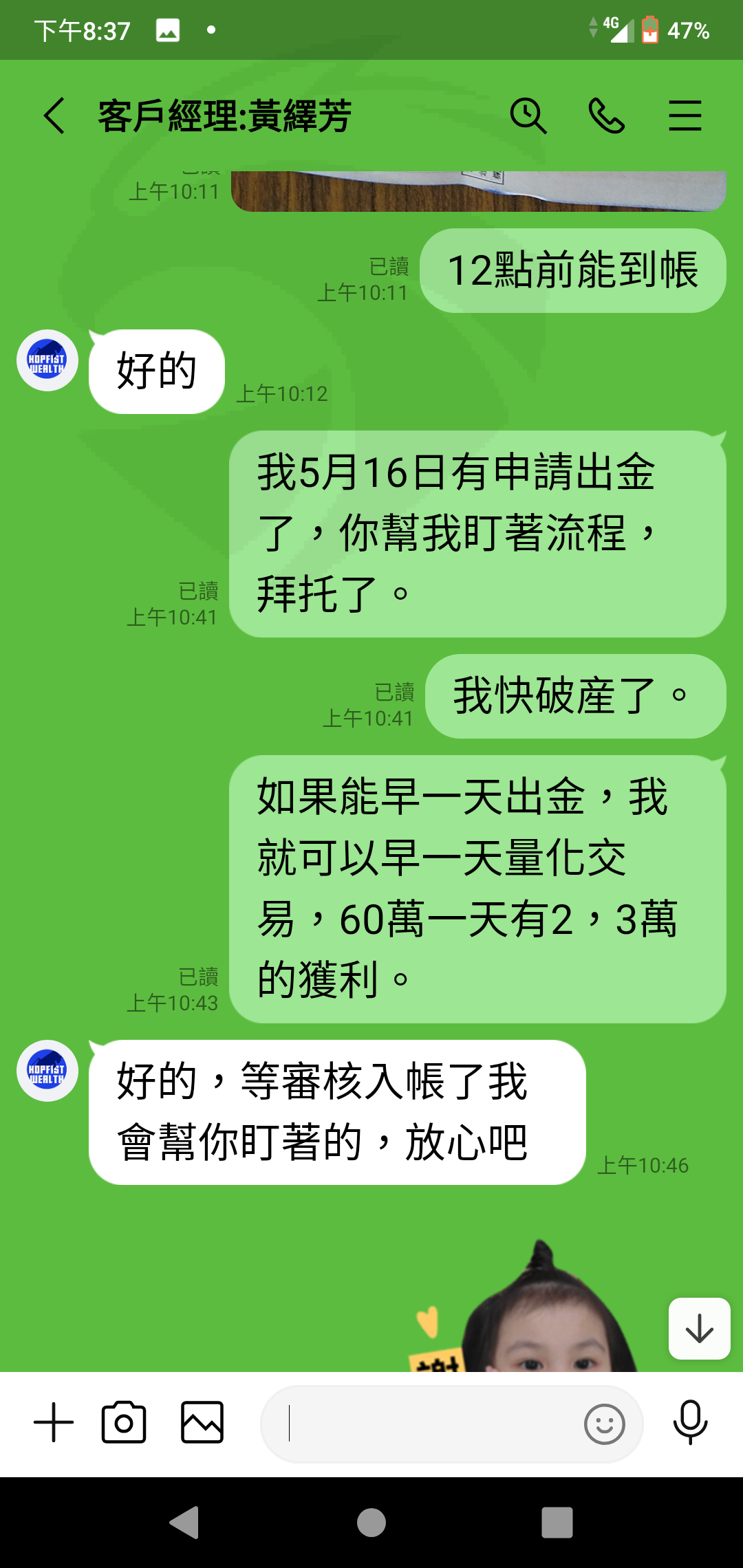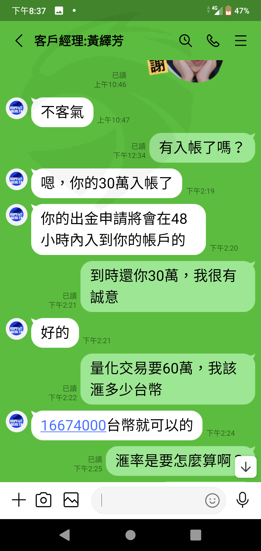 HOP這家公司夥同仁祥公司匡騙投資人,帶領操作黃金交易,支付巨額分成費,獲利後無法出金。