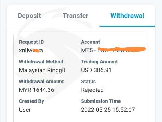 我的提款状态显示被拒绝,并收到他们的电子邮件,说我的身份证是假的..当我联系他们的客户服务时,他们只要求我等待,我已经等待了 1 天..我不知道多久我需要等待