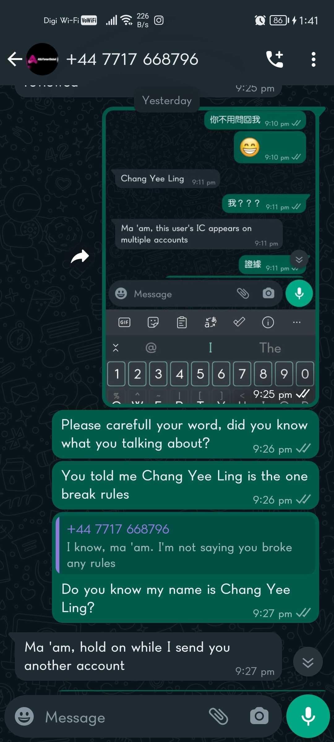 Anyone know what's the problem? I no idea why customer service said my identity card use for multiple account? Since last week I still can withdraw, but now they suspended my asj acc🤔 in our conversation ms/Mr customer service said the name is (Chang Yee Ling) break asj rules, but they can't proof to me 🤷🏻♀️ and I can proof myself. So anyone here know what's the problem? 🤔🤔🤔