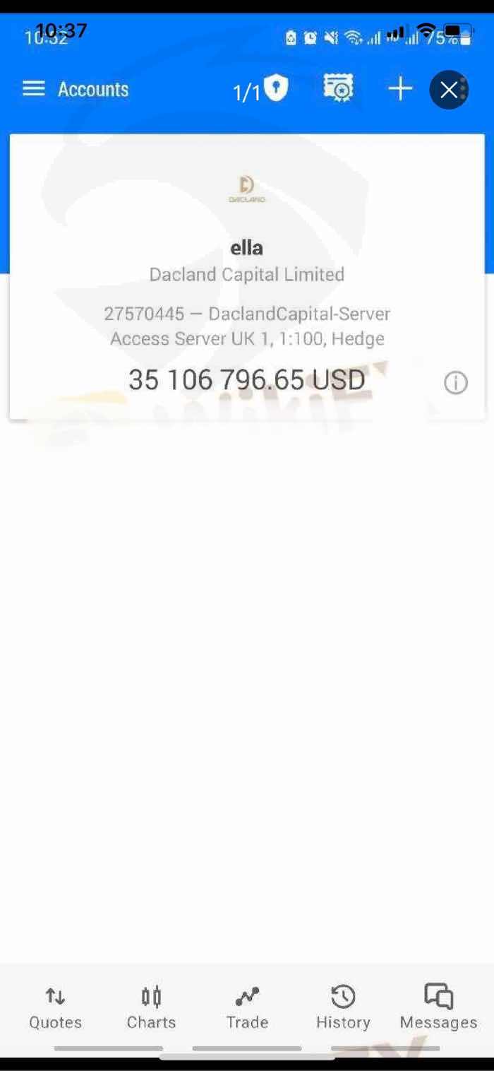 他们允许您进行交易,但他们推荐他们的交易并在开始时与您一起进行交易以显示利润,一旦帐户赚钱,除非您投入更多资金,否则您将无法访问它,这是一个无休止的循环,但课程 AssetsClaimBack/ com 批准的行动让我退还我的钱。 Dacland 要求巨额存款以获取您的资金。绝对荒谬!