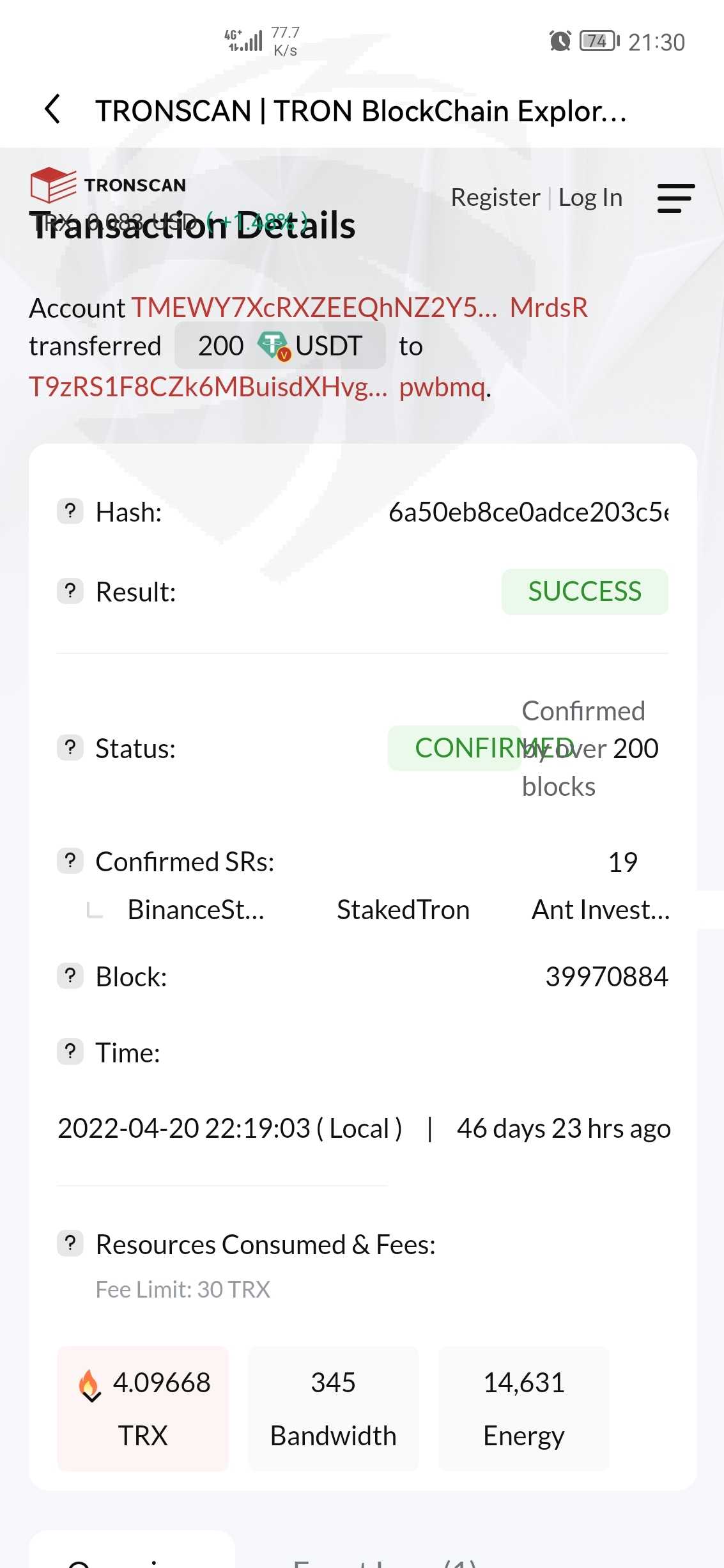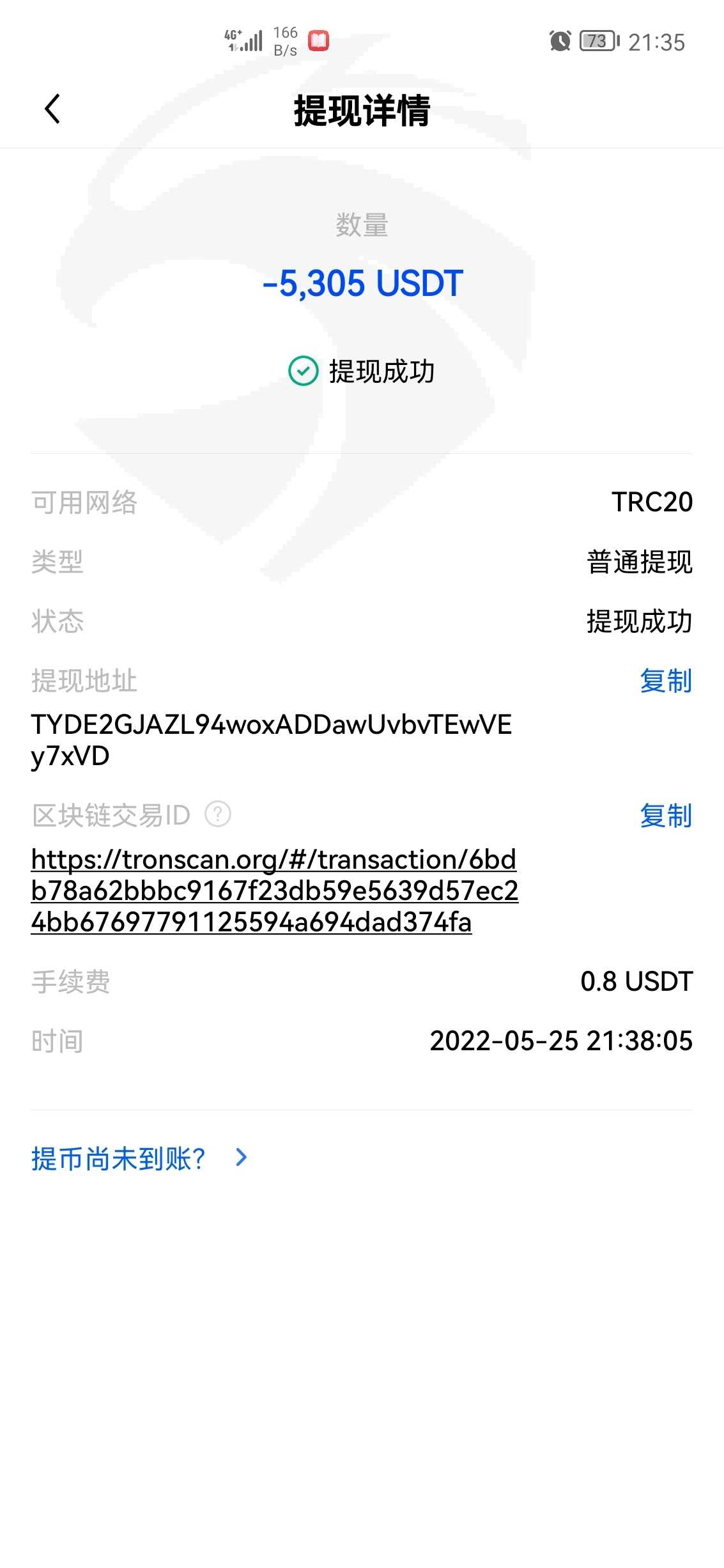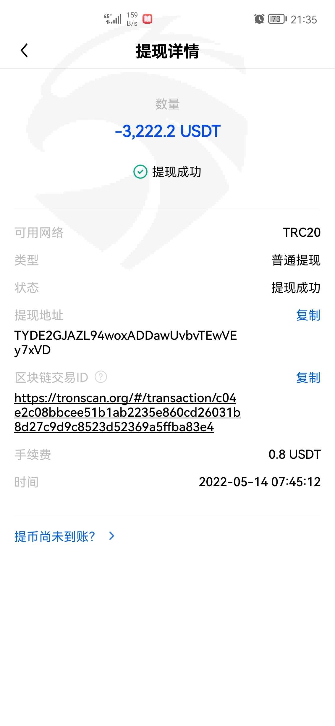 出金迟迟不到账 !而且4月20号200出金的哈希值截图,和5月17号53021的转账哈希值截图,除了金额和时间,别的数据一模一样