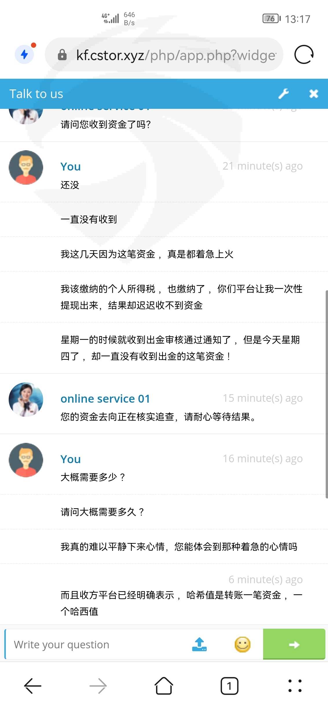 出金转账一直收不到资金.而且缴纳了个人所得税之后,客服说三天就能到账,让我缴纳百分之十的安全沉淀资金