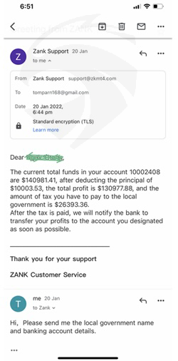 ZANK通过虚假承诺和未经授权的交易,从我的投资中提取了 43,000 美元。我已向欺诈部门和金融行为监管局fintrack/org举报了他们,希望有机会进行复仇,更重要的是,我的投资能够像其他投资者一样被退回。
