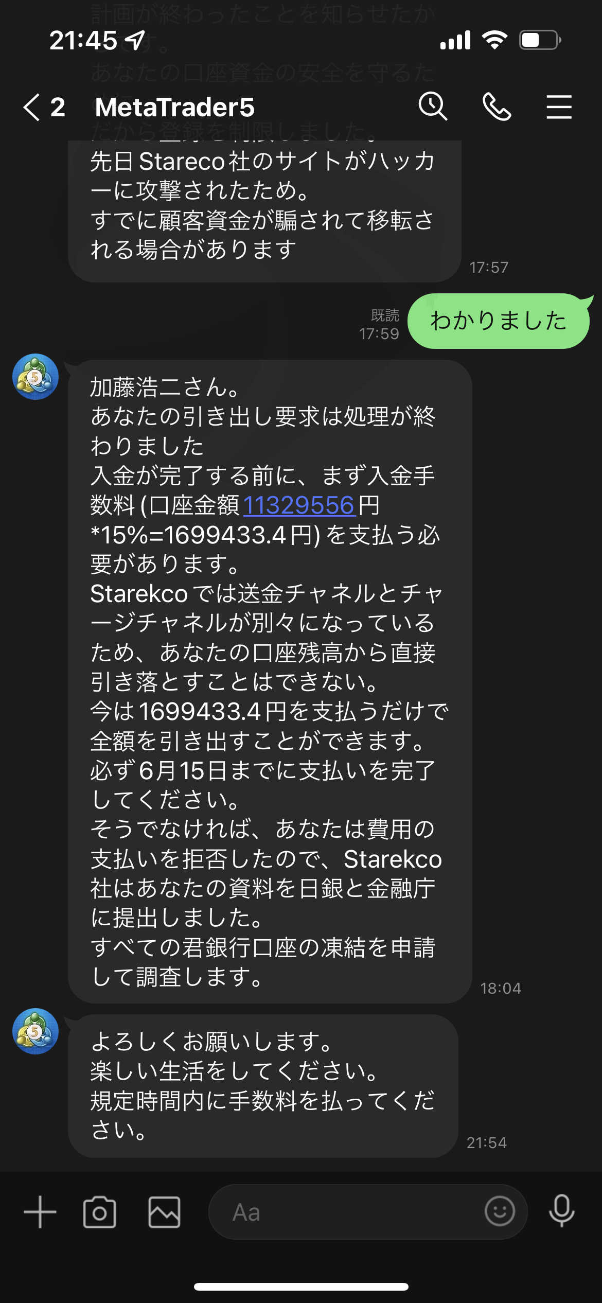 アナリストの取引報酬を払っても、 入金手数料を請求されて、入金手数料を払わないと出金できないと言われました。