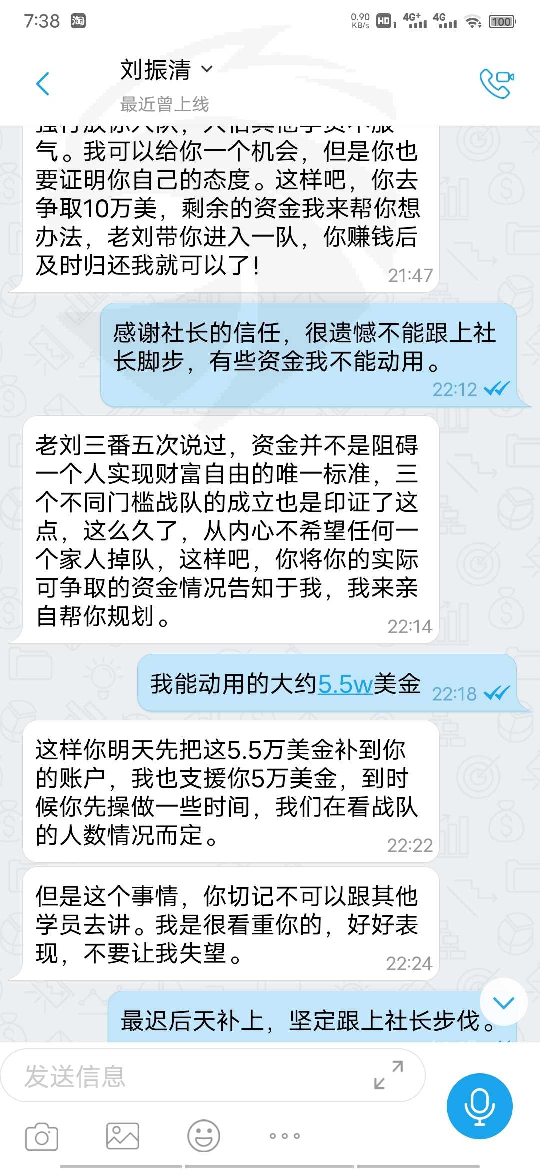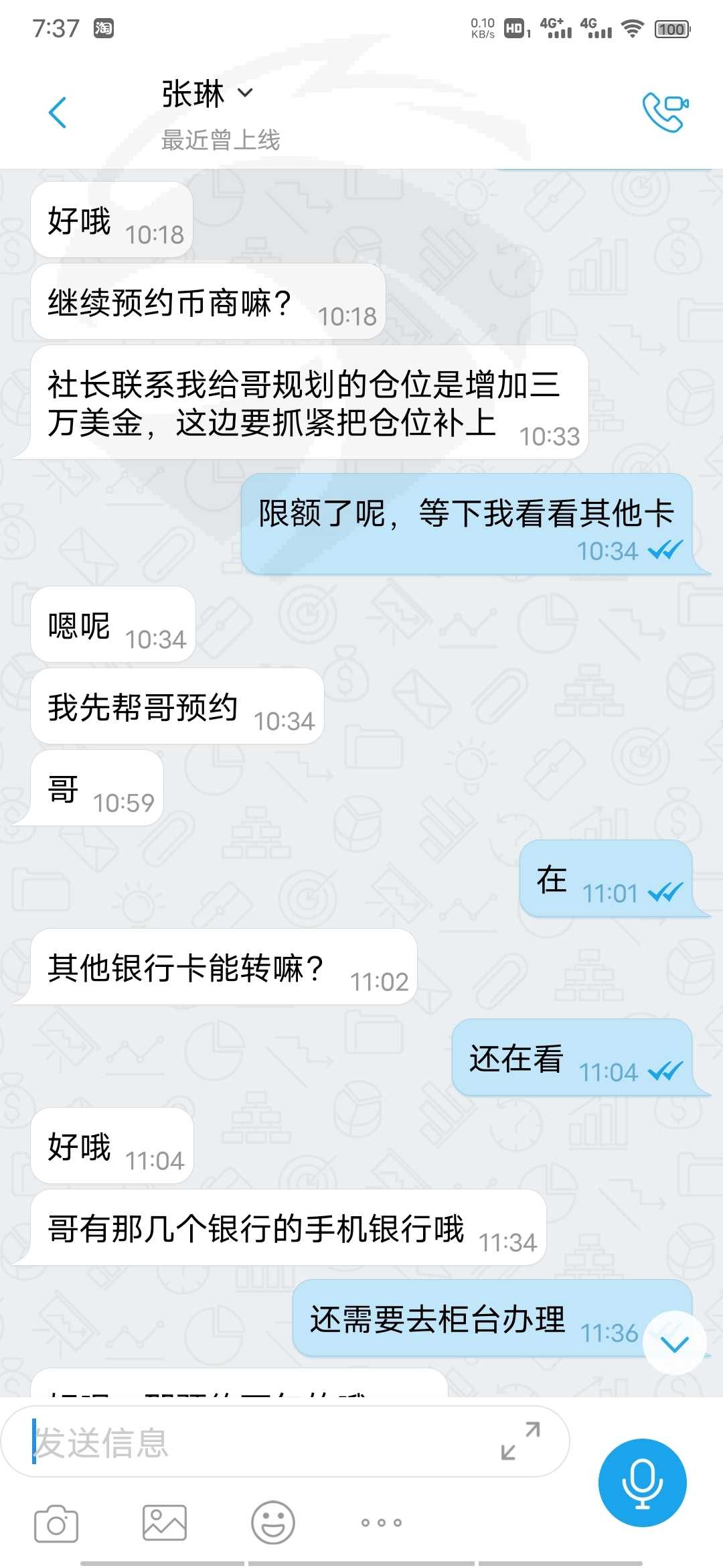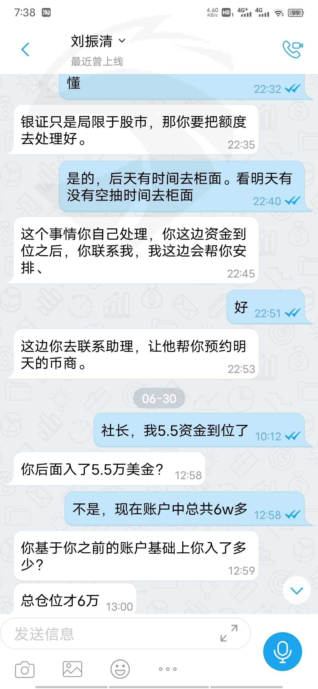 散联社刘振清,助理张琳,通过电话邀请散户参与金股3号股票,说是带领大家获得3倍收益。再大家进场此股后,以资金缺口8个亿为由让大家去操作比特币,说比特币能快速积累财富,但并不解释风险评估问题。我跟着操作,先是让吃点甜头,后来要对大家划分战队,战队有资金要求。刘振清和助理不停的要求向比特币交易账户中入金,等总仓位大了后,操纵币市收割散户。图中3条长上影让很多人被强制平仓亏损,还倒贴交易平台钱,无力承担巨额亏损,导致家庭出现问题。