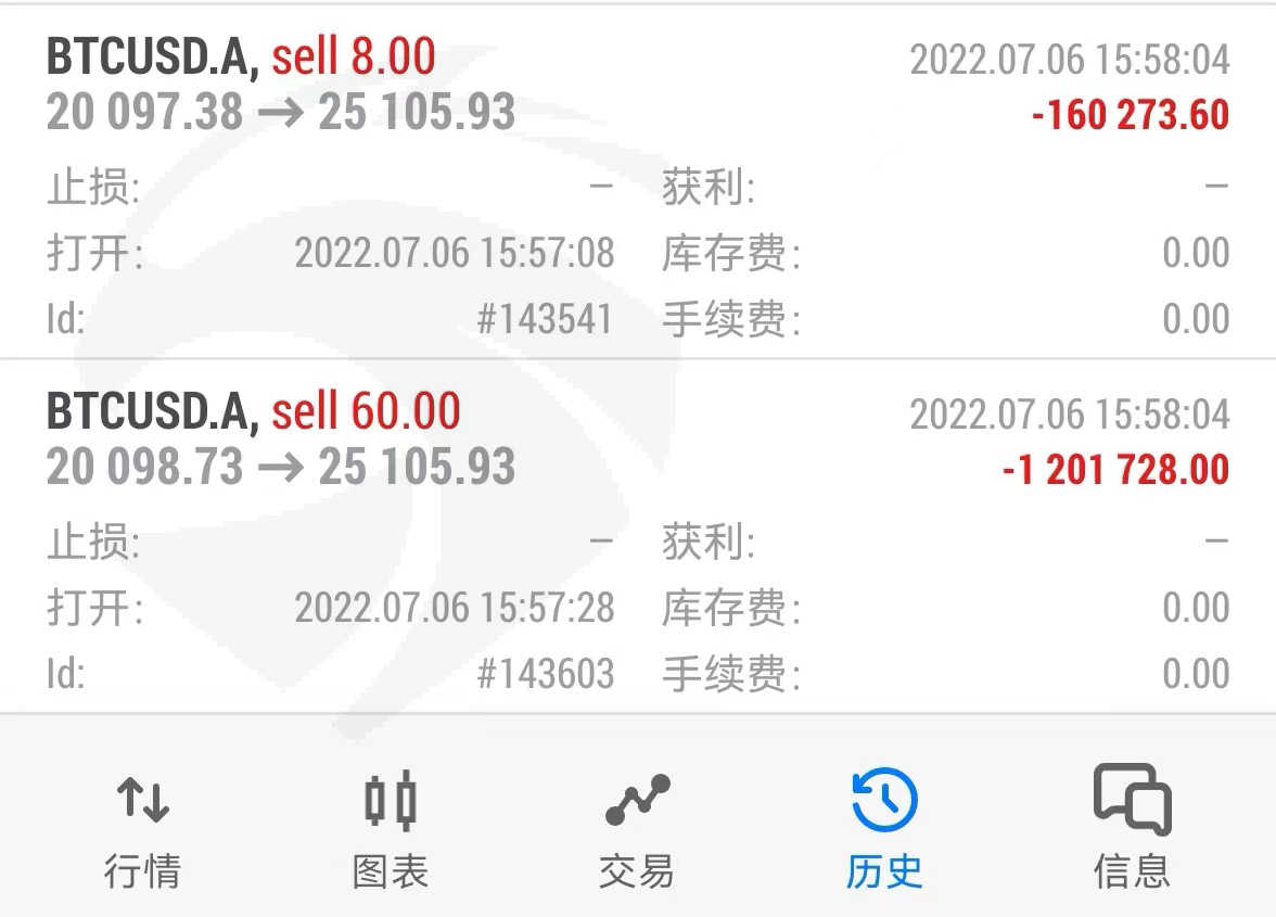 恶意更改BTC走势,导致MT5交易账户爆仓,造成26万USDT实际损失!望贵平台方重视!