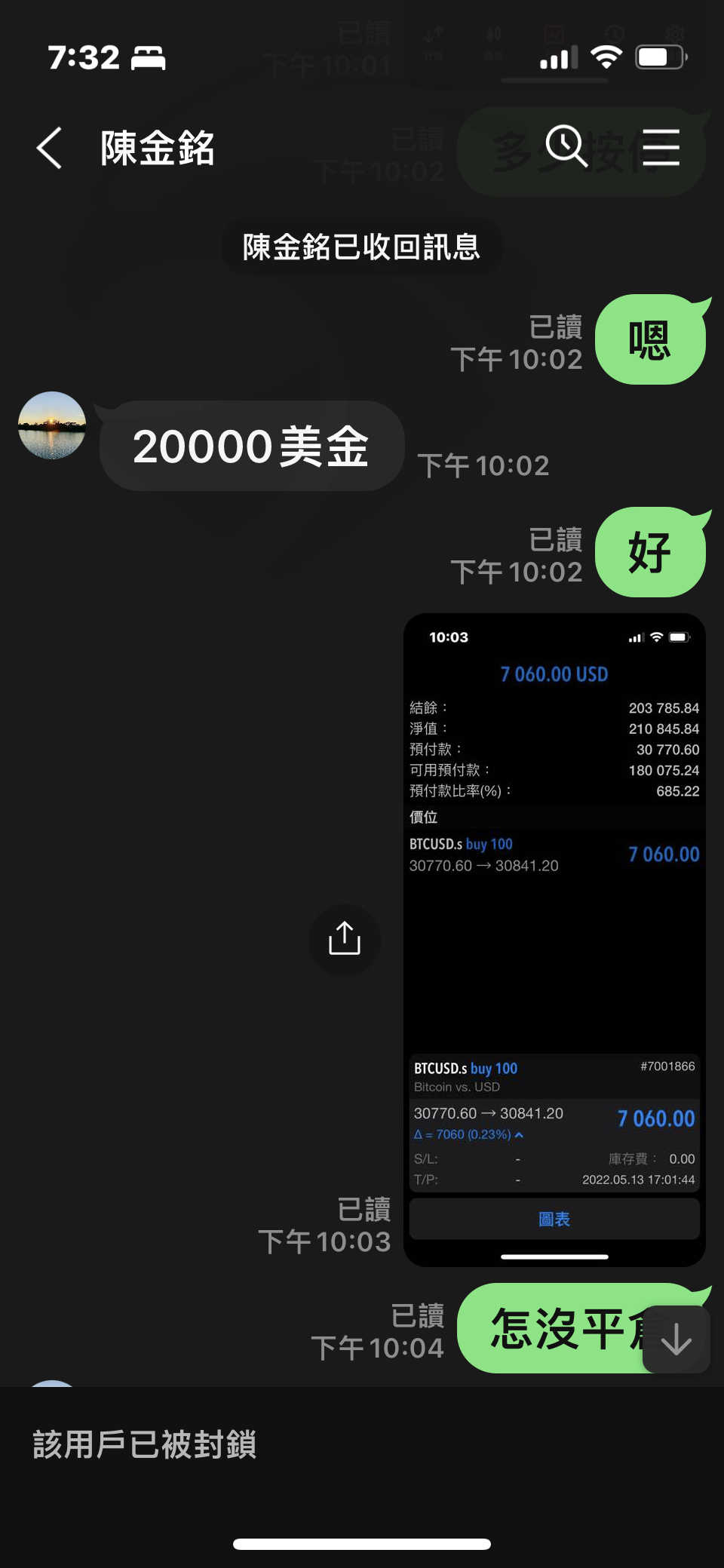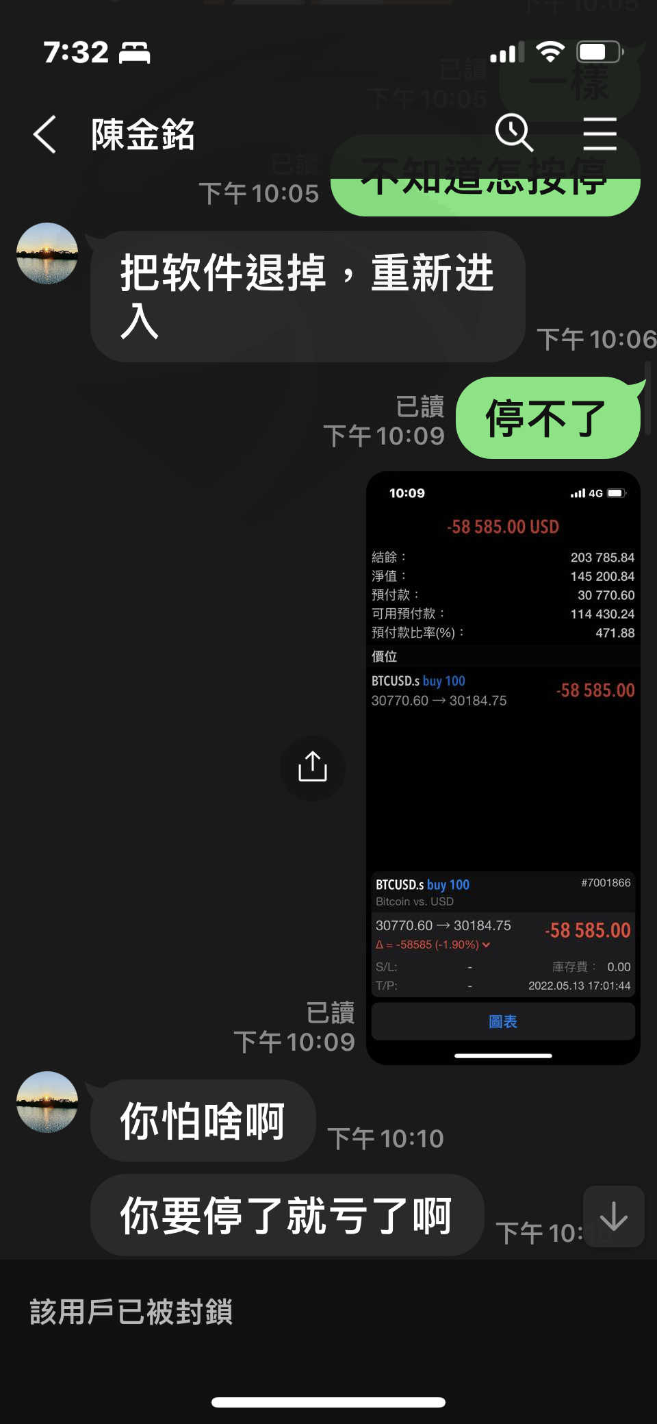 騙子不會承認自己騙人,還會詐騙完你,再對你加以恐嚇…不準亂說話!這是我跟他的對話和MT5的平昌突然不見的對話,他還ㄧ副無所謂的態度
