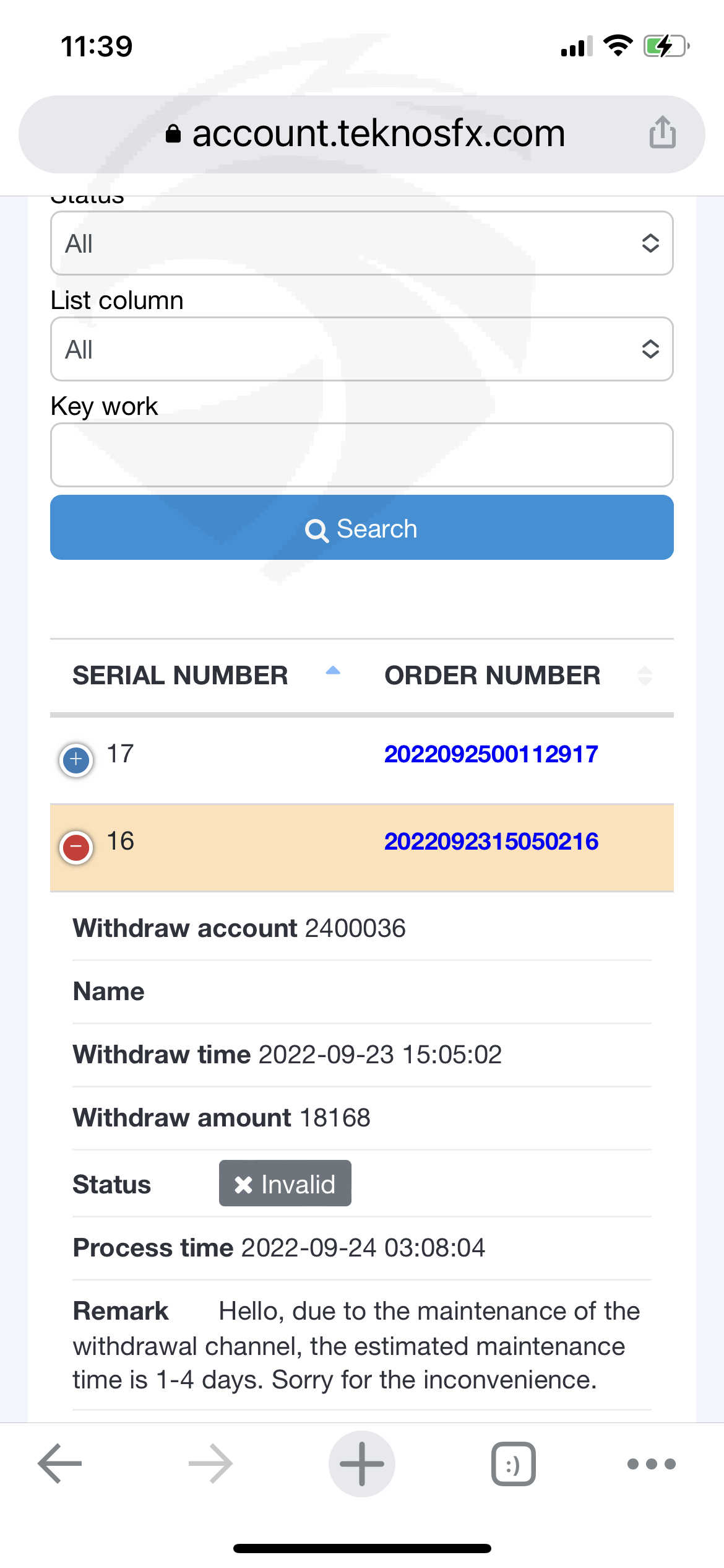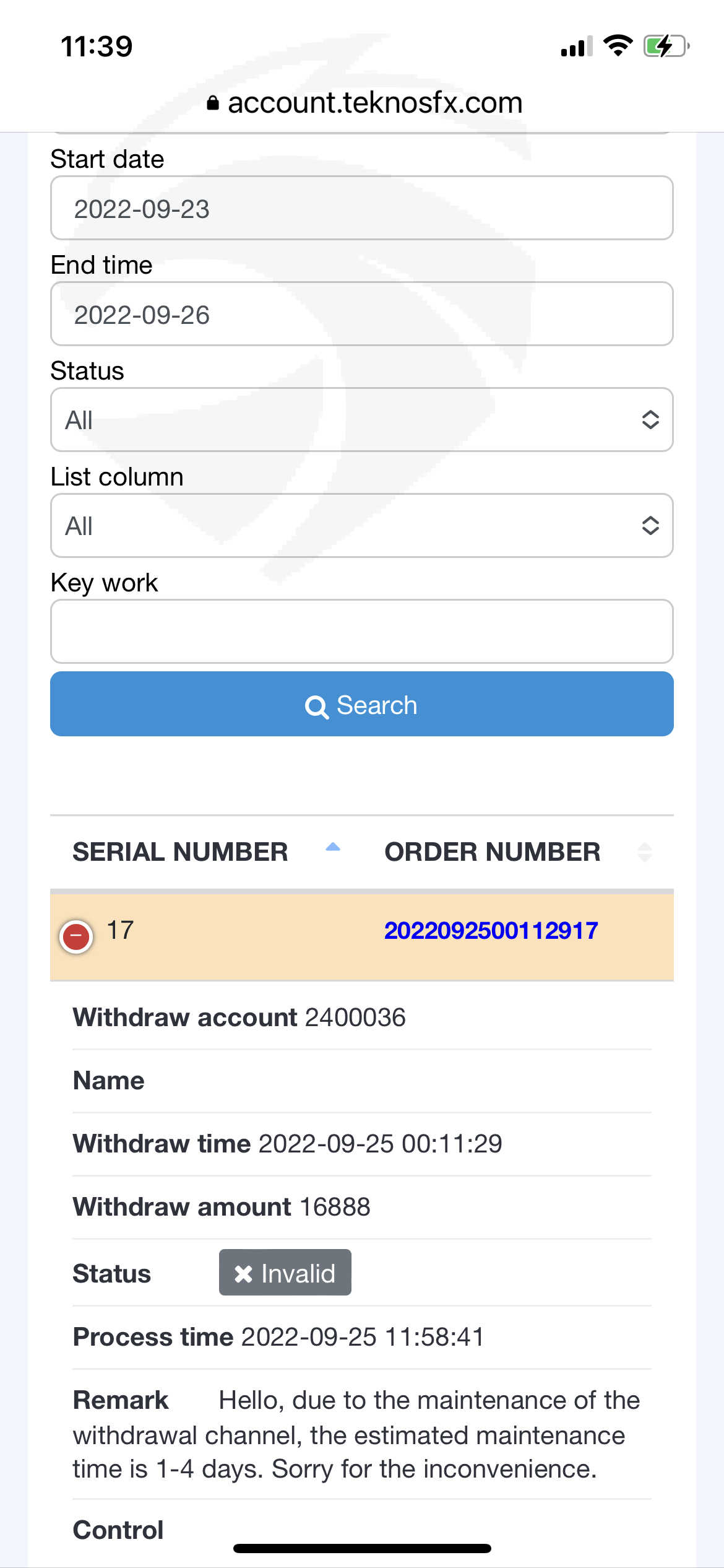 I didn’t do that but try to withdraw the most of my funds on 9/23, but failed and the message saying “due to the maintenance of the withdraw channel, the maintenance time is 1-4 days. Then on 9/29, someone used my account to trade almost 90 times in 20 minutes and caused most of my funds lost. Who can access my account? Teknos!