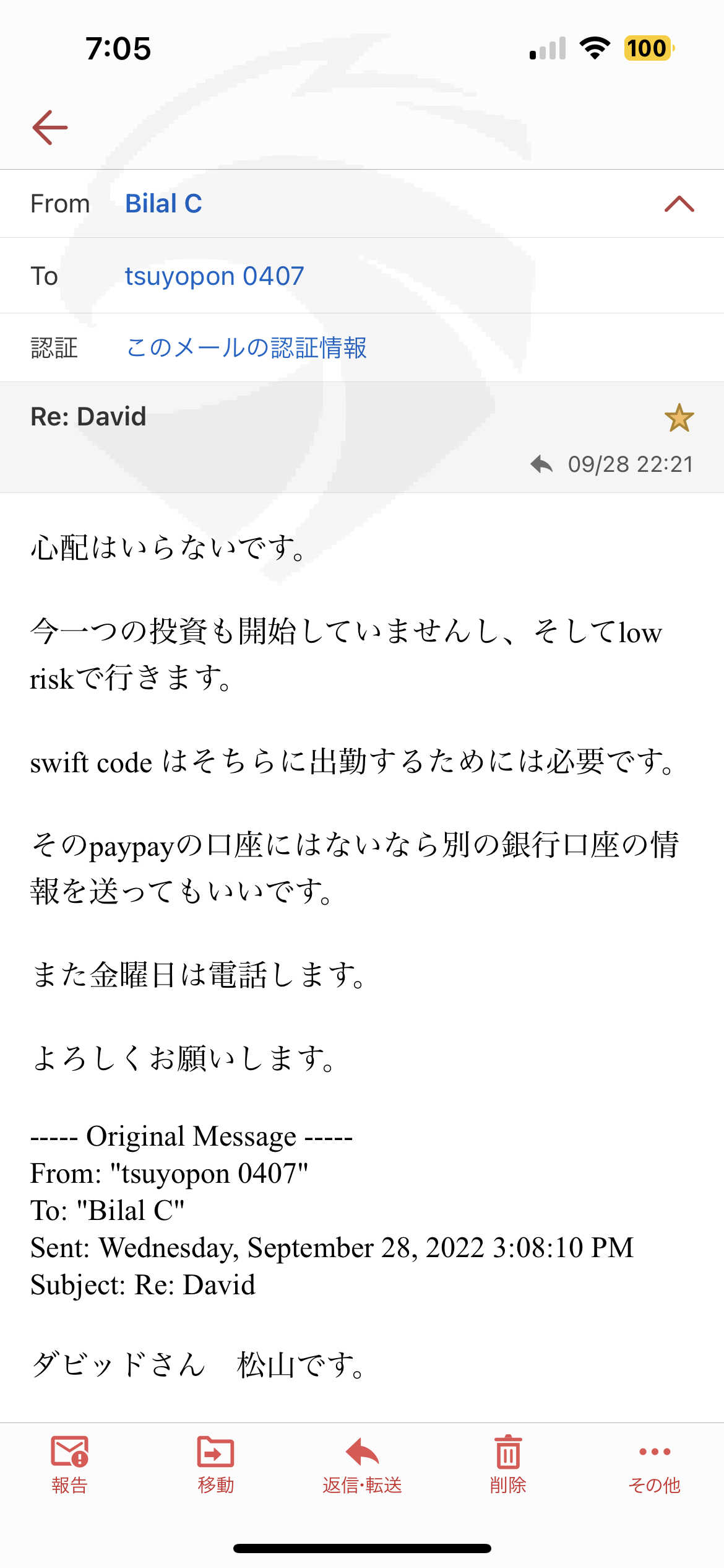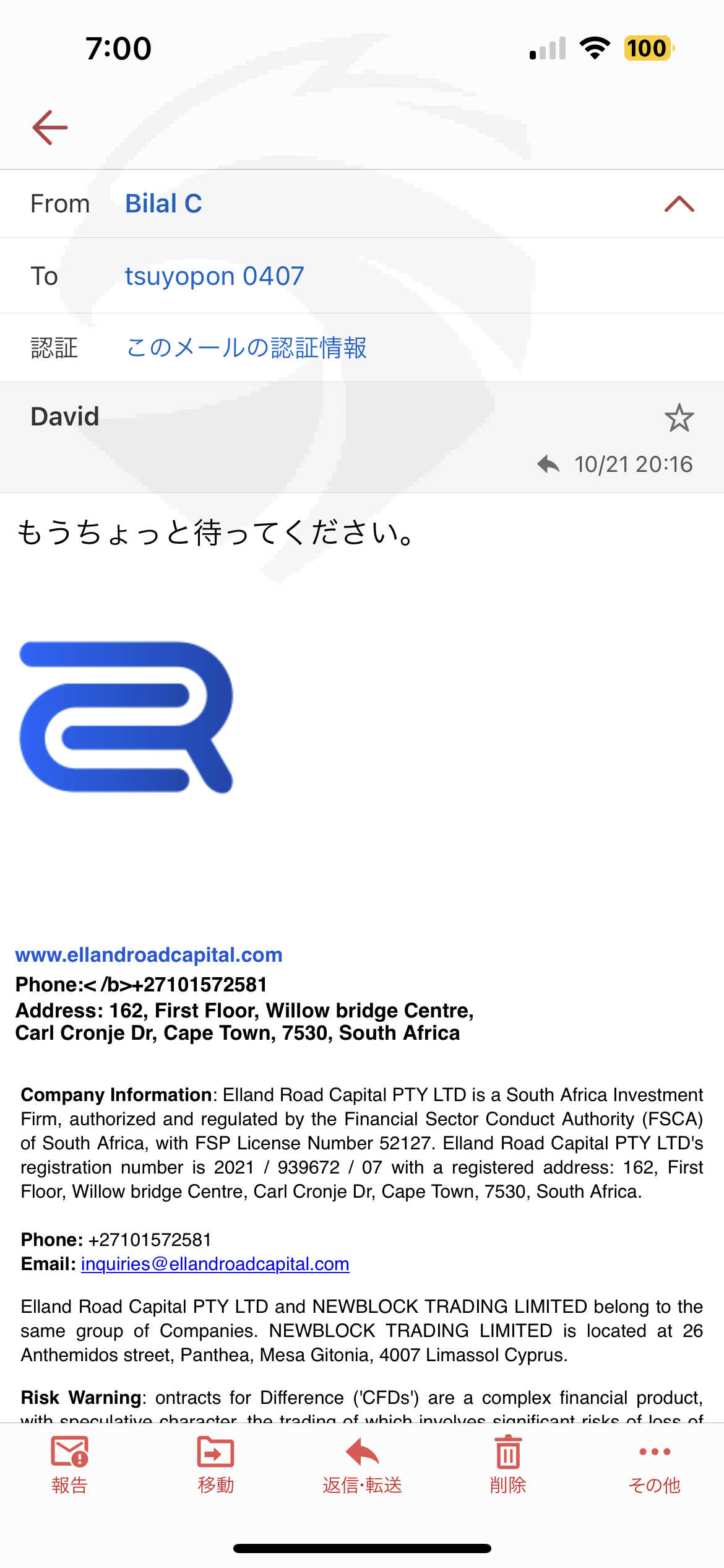 最初はゼキという人が担当で新しい担当から電話がありますと言われダビッドか担当になりました ダビッドとのやり取りしたメールと私のアカウント、残高の写真も添付しておきます