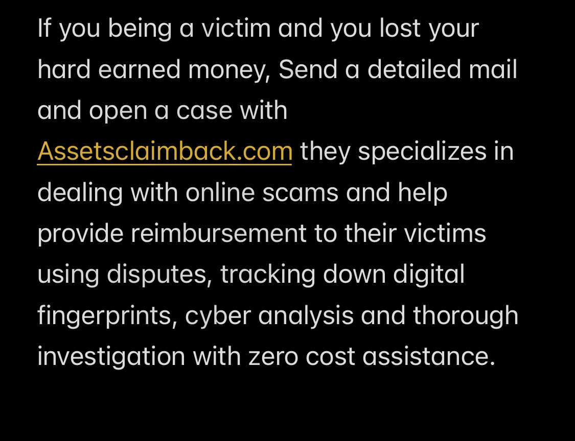 they replied that my profits are deleted and I can’t withdraw my deposit. The Assetsclaimback/com increased my invest