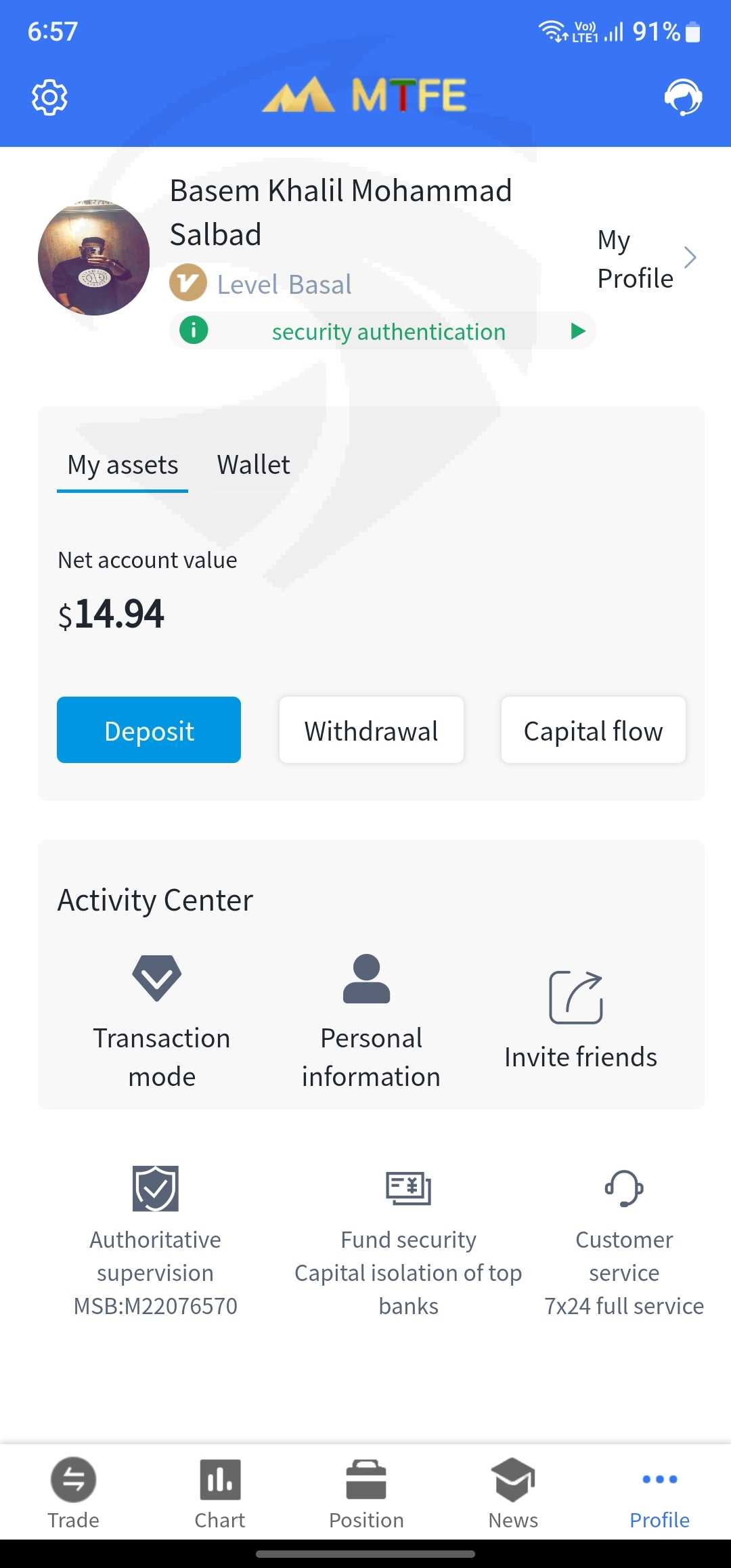 أخذنا الصفقة من البروكر (MTFE) عن طريق الواتس اب وفي لحظات حصل انزلاق شديد وخسرت كل ما أملك في البرنامج