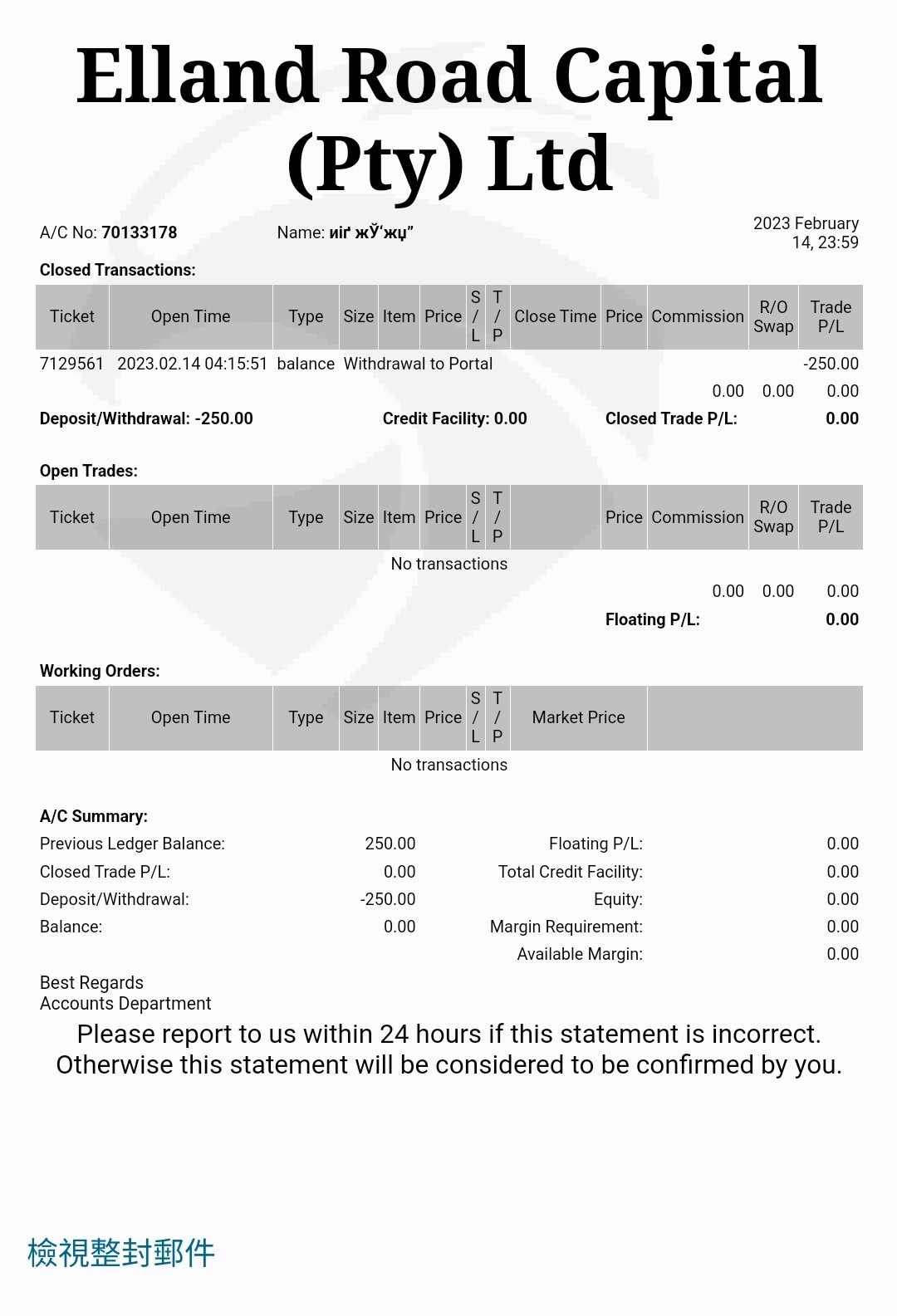 第一次接觸,電話中先引導我開戶250美金。之後我覺得不保險不想投資了,想把250美金轉出卻無法。