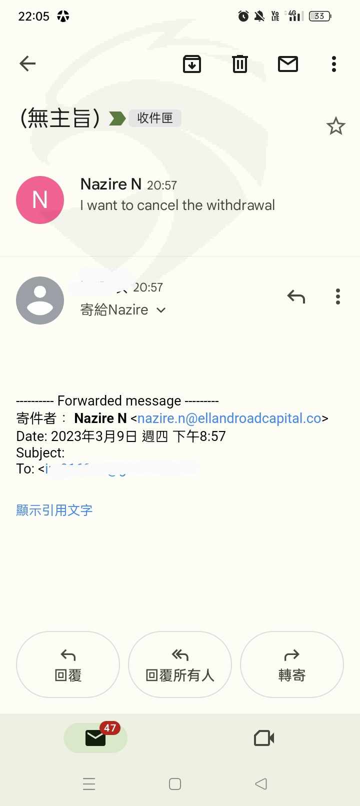 2/17在網站上看到一個網頁(用了郭台銘的名子)說只要投資七千多塊,就能快速賺錢,忍不住點進去,就有國外電話(顯示英國),打給我,叫我開戶,上傳一堆身份資料文件,說要刷卡250美金,想說金額不高,就試看看,後來有一個女的大陸人,說是我的專業經理,說再入金2000美元,幫我開2筆交易,都有獲利,測試他們的提款有沒有問題,提款100美金,退到信用卡上,2/20就說要增加一些資金,說是2-3千刷卡時,就改口要入金1萬美金,不是個小數目,信用卡刷4千就不能刷了,我一直跟她說我沒資金,她每天每個鐘頭像討債公司一樣一直打電話,還說她跟主管有簽約,我一定要補足1萬元美金,2/22-23我補足了剩餘資金,想說這樣沒問題了,還一直跟她說我不會再增加資金了,我還要生活,還有4個小孩要養,她就說她知道,2/28連假,賺了幾千塊美金,3/2她又說已經15天了,我信用卡帳單還沒有下來,又要入金1萬元美金,我想說才不理她,沒想到她之前開的交易有巨大的虧損,保證金水平很低,只好入金4400美金,我跟她說我沒答應要入金1萬美金,成為你的白銀會員,隔天叫經理(說中文的老外)打給我,說我讓你在這裡投資沒有收費怎麼樣,說有簽約?,要補足剩餘資金,我跟他説要退出,他說先補足之後再退出,3/3我補足金額後,3/4星期六發現網站手機連不上,連到台灣的警告詐騙網頁,我心都涼了,胃好痛,星期一網頁又能登入了,電話打來,我問她有兩筆未認列的虧損很高,要怎麼處理,她說放著不用管,再從別的地方賺回來,才一星期隔夜費用一千多,之前也才賺8千塊美金,3/7晚上英鎊兌美元大跌,快爆倉,才入金沒幾天,隔天我就不再接她電話,不打算入金,一整天一直打電話,我決定自救,把小額虧損(設的點都在盡頭,短期根本不會達到)都平倉,大額虧損平倉一筆,留一筆,看會不會跌少一點,之前餘額3萬美金,剩下5千6,我直接申請提款,對方說要她批準才能提款,非常無恥的叫我聽她的操作才能退出領回剩下的錢,叫我取消退款,說要把點數退掉,開了一堆交易,全部賠掉!最後還問我要不要增加資金她幫我賺回來,我都快被她氣死了,說賺回來再退出,我說不需要!希望以後不要有人再被騙了,高風險投資要自己操作,不要聽人說怎麼操作,結果虧的比賺得還多,根本就是一個詐騙集團,假投資,真斂財!