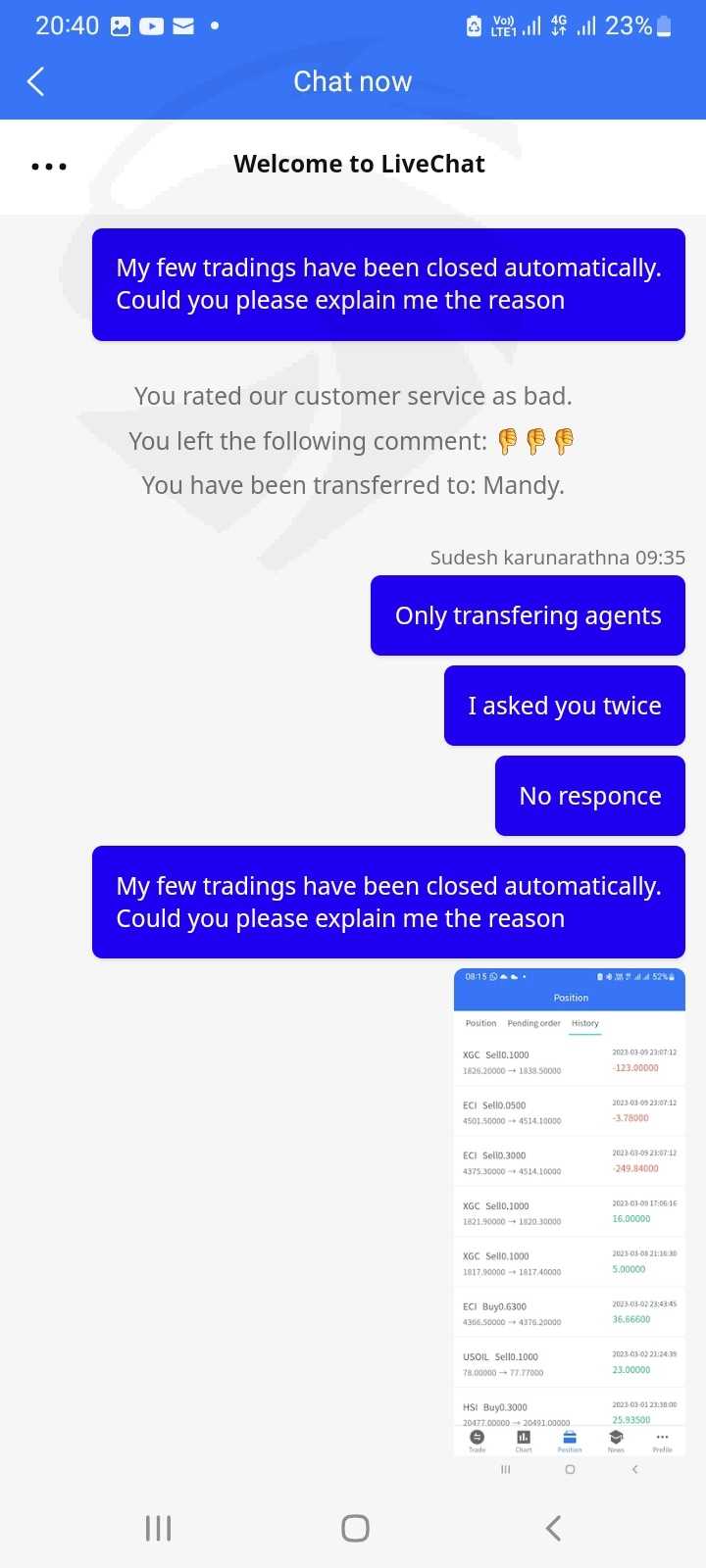 我的两个仓位都爆了,当我联系客户服务时,他们没有回应。我可以省钱了。