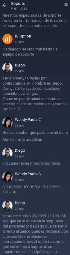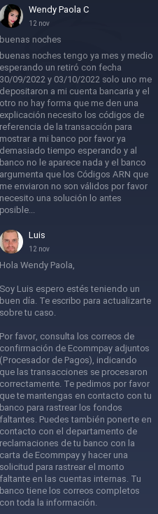 Llevo meses esperando mi retiro que nunca llego a mi cuenta bancaria en definitiva un fraude total hace meses espero eso y la única respuesta es que me mandan unos códigos que el banco los cataloga como no validos de operaciones que el Bróker nunca realizo y El bróker no me da solución de mi dinero y el banco me dice que nunca se realizo la transacción de parte del bróker.