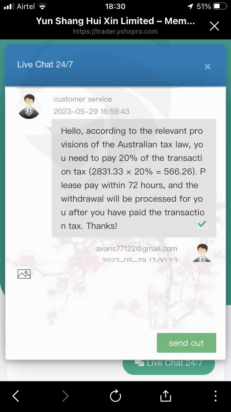 The CS asked me to deposit tax of 566 $ while I fill withdraw form. After deposit the tax CS say you trade many times in a single day and you are using illegal software for trade and making profit. While I am using MT5 for trade. They must be have all my trading data. And now CS asking me to deposit more 500$ for inspection. CS say company will inspect your trade and data for trading many times in a single day.