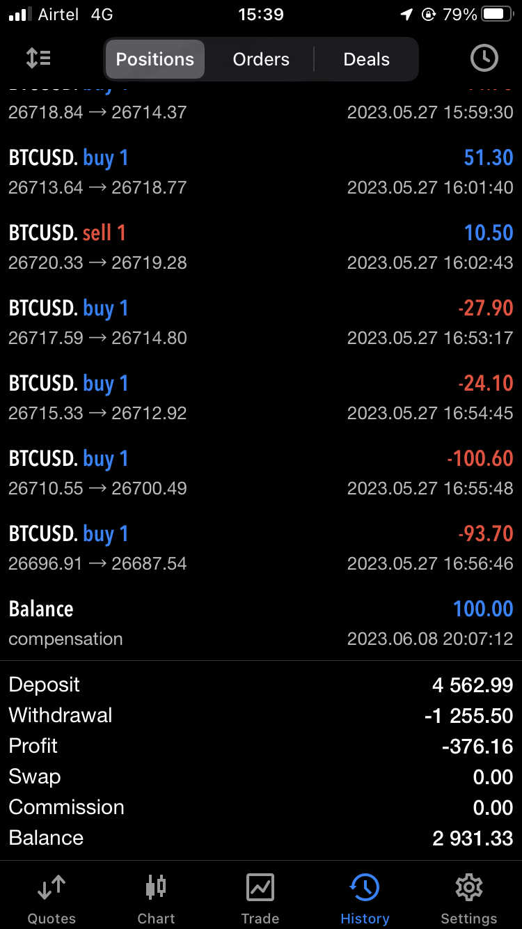 .Now they add 100$ in my trade balance as compensation.now it’s total is 2931. but mine is 2831. but not withdrawing my money and also not replying my messages.