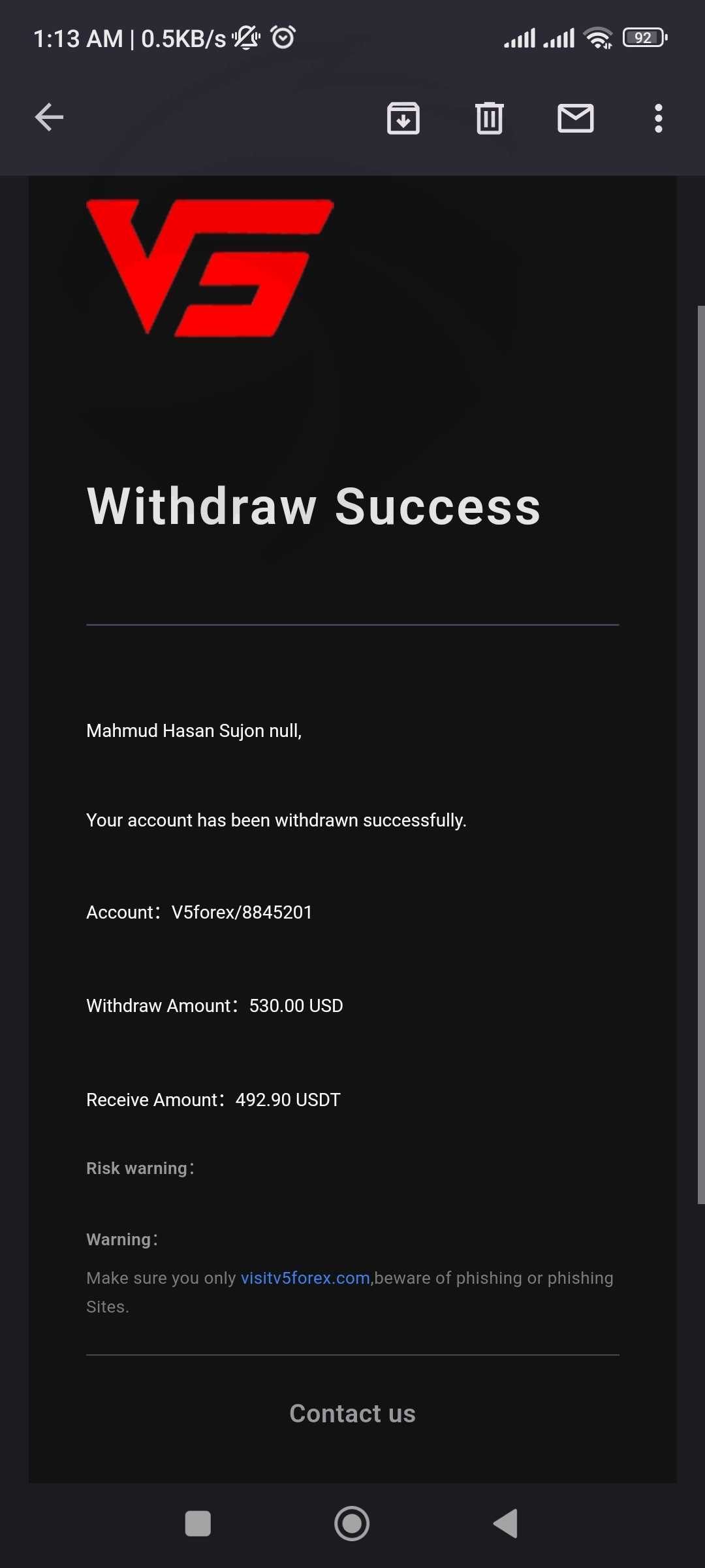 Mail send withdrawal successful but not send usdt!