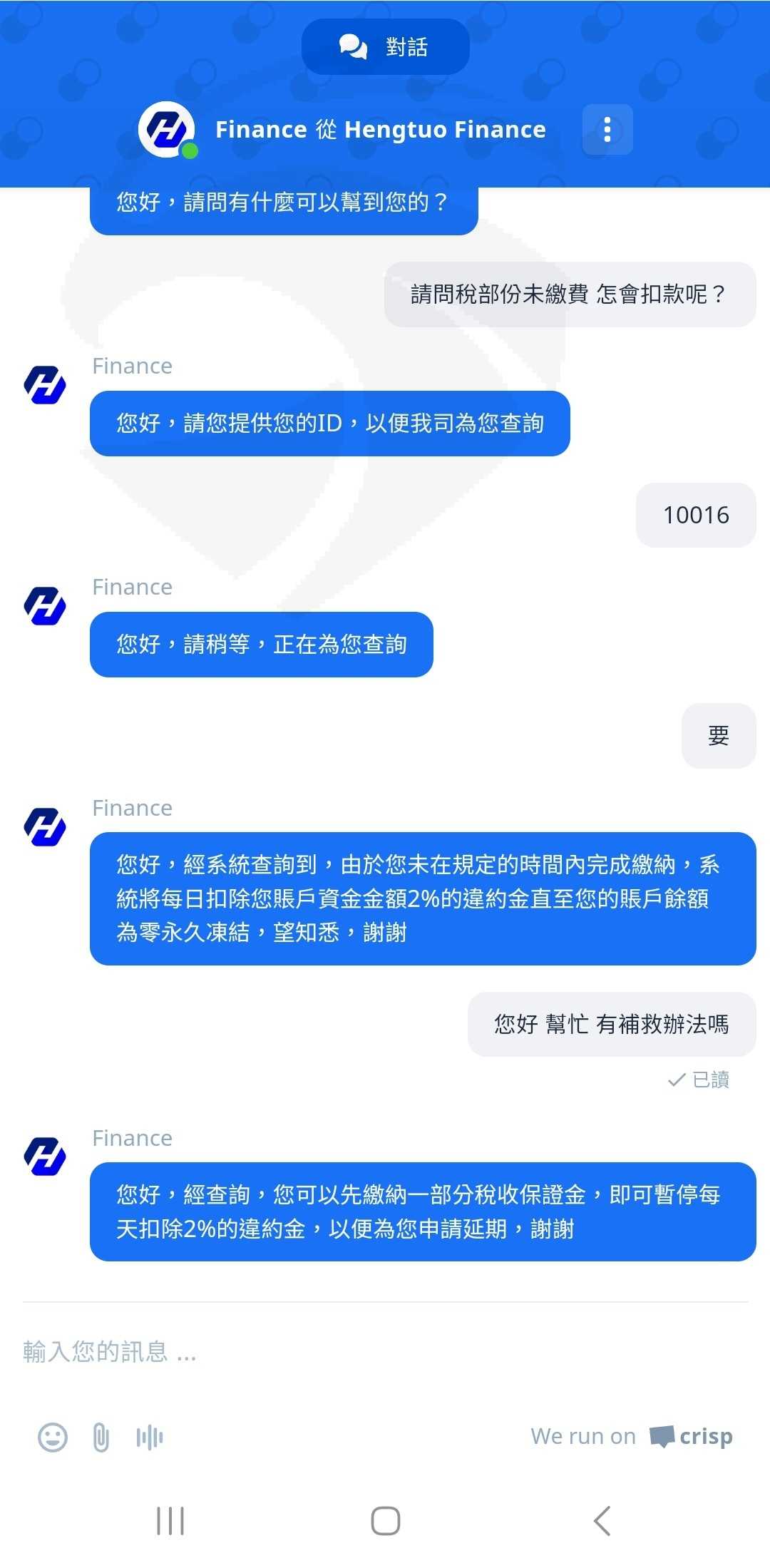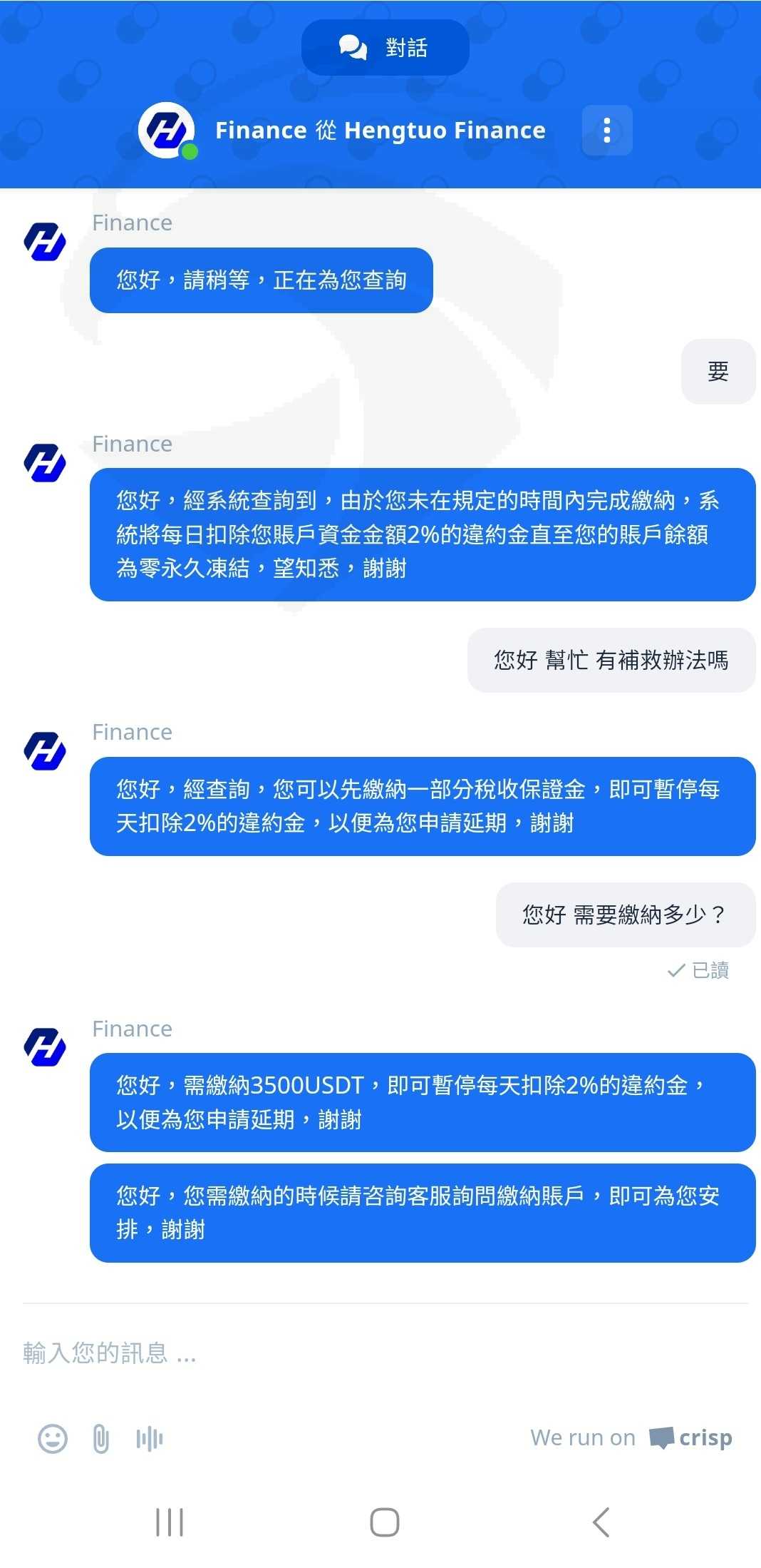 繳不出來.客服又說每日要扣2%