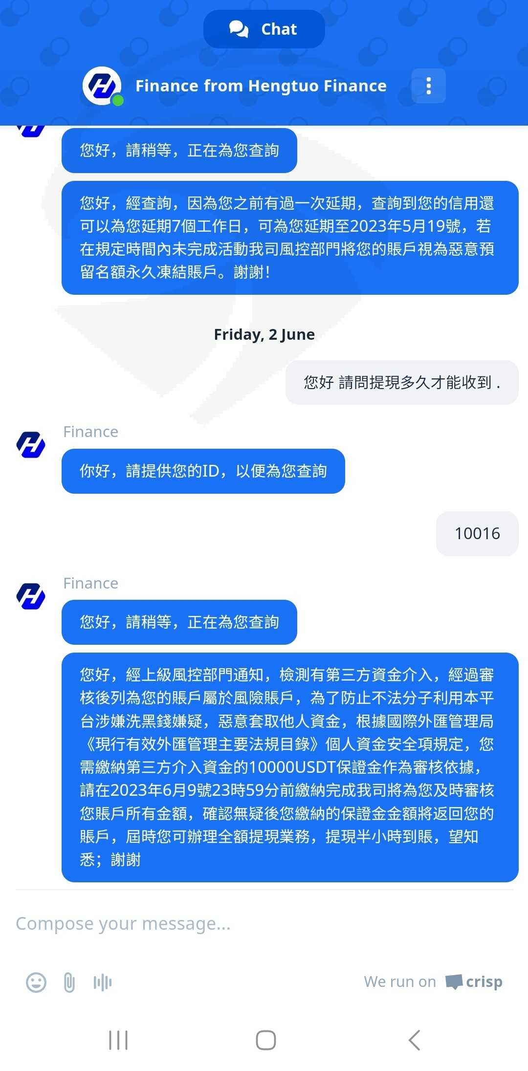 堆名義上拒絕出金 ...