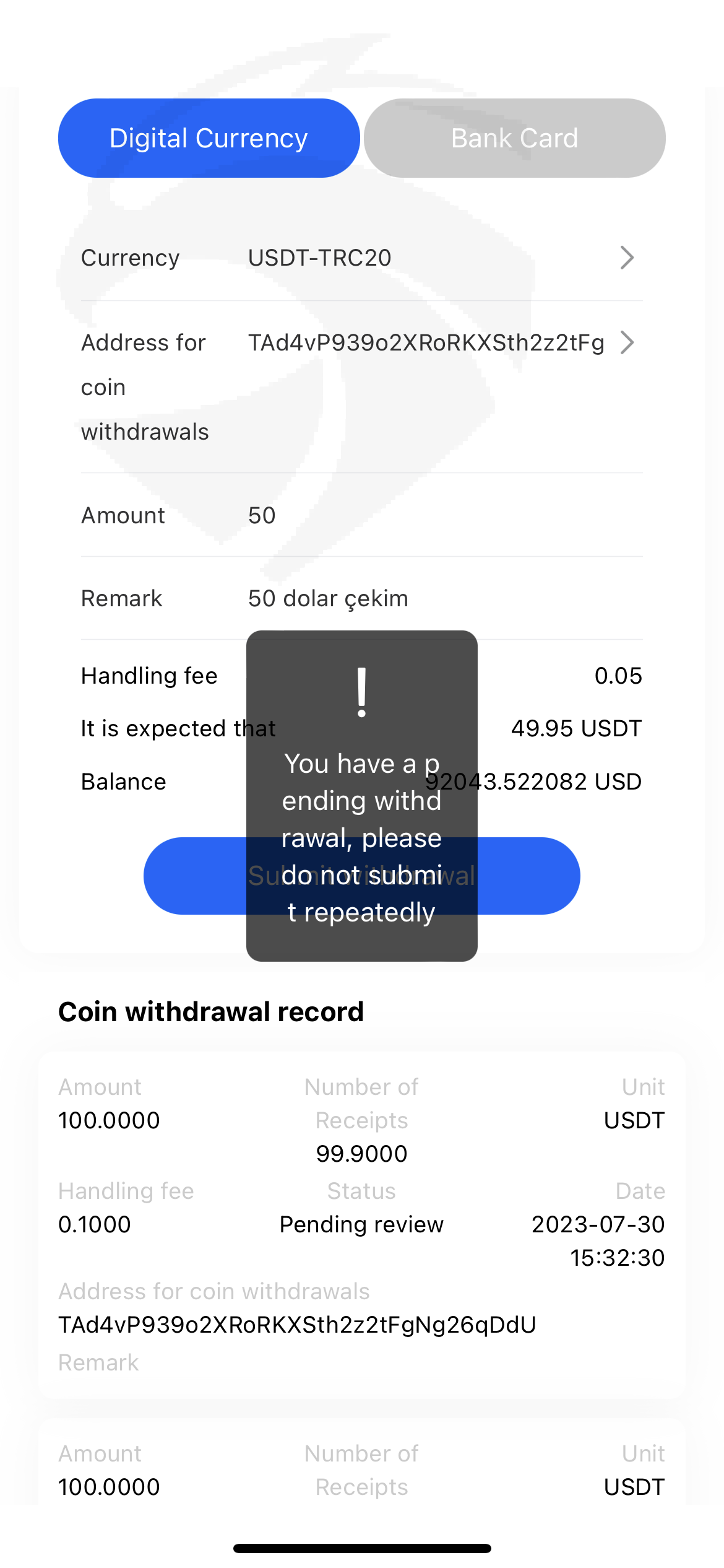 他们说不纳税就不能提取钱。不过,我免税提款50美元2次。现在我无法提取它或任何金额。他们冻结了我的帐户。我给他们发电子邮件,他们没有回复。他们偷走了我的 92143 美元。
