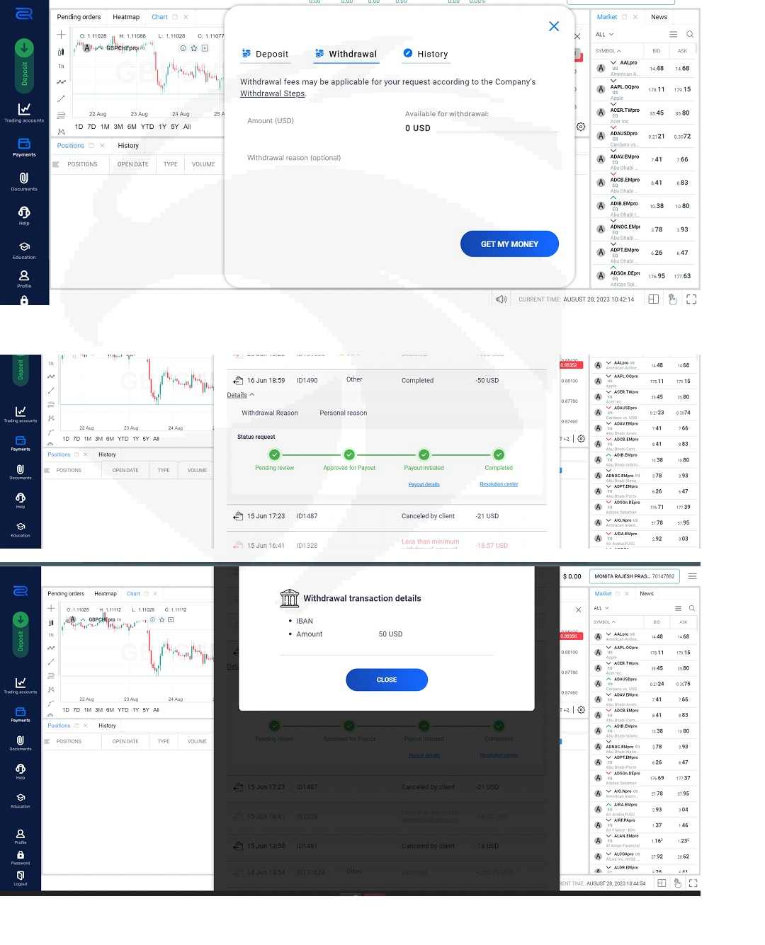 Allandroad account is: (*******)Will share details step by step in few weeks since it is in scrutiny. But if there was rating in Negative I would have put -5.Not because of loss/profit, but overall their modus of operandi. Will suggest to all to be cautious, if you are sharing credit card details at international level and pressurized to add more money showing temporary some profits.If you start noticing your holding in loss after some profit please stop it there itself and withdraw your remaining amount immediately, and change you credit card immediately.Even if you show the Trustpilot/other review and asked them,they will give you examples of some know national Company negative review.This is a trap. Please don't go for it.You will be in loss,not because of shares., but you will never receive your invested money back as they don't have any withdrawal process on its own. You need to get their approval which will only be for first time to gain your confidence (that too after few reminders) and next time your money will be gone. Not sure if its really getting invested in Market itself.This is screenshot of same card from which fraudulent international transaction did happen. Apart from this I have also share some Audio recordings which was always on internet and attachment( email by their account /sales manager "*******@ellandroadcapital.com ") to "*******@ellandroadcapital.com>" email. I need my money back since I am sure it was not at all a loss which they want to proof. IN fact I can say that was not trading but trap, to get our hard earned moneySteps how I faced the number of fraudulent issues after registering to Ellandroad:1) You just click the URL and curiously enter the email Id details2) Their person will immediately call you and insist very politely to complete your registration and they will add credit of amount $50(This is 1st trap) to convince you. The minimum amount is 250$ to get yourself registered They will also insist to use credit card only as the other payment option will not work.3) They will very humbly help you to enable your international transaction feature (This is 2nd trap)4) Immediately their sales person will start calling you on Zoom meeting to start trading. He will get familiar to you and also some of your monetary related issue5) You will be happy to see some positive trading for 2 to 3 days.(This is 3rd trap)6) Now sales person will insist to add some more amount.7) You will somehow add minimum again and that is 250$.I have also added.8) Since I had a doubt on overall withdrawal process I tried to withdraw some amount. This sales person has immediately call me to know why I am withdrawing my amount. Not sure why I did not suspicious about it, but you will need to give justification to withdraw your own amount (Why we need to justify not sure). He said that without my approval you cannot. Which should have clicked to me, but he immediately asked that since he is SPOC for me and all my issues will be addressed by him and that is the reason I need to contact only him. He asked me to share the bank account and IFSC code to deposit the money. The account details taken by him is never visible in withdrawal section and also did not see any transaction ID.9) Sales person will leave you alone for some days so that you can do some transaction on you own if you don't add any more money which he has insisted for.10) In my case the transaction was going in loss and hence to sustain I have to add more money.(4th Trap)11) Since I was not taking his call almost for a week and also did not add anymore money, thinking there is some problem around overall process, but was not sure so decided not to add anymore money irrespective if it profile /loss. Vey next week, the day has arrived i.e. 25th July.A) I received the SMS for same card from which I have done the payment to ELLANROAD that about 729$ is deducted without any OTP and so on. And immediately second SMS. Lucky me since I have added the limit in the card. I got my card blocked immediately, but there was loss of 729$ which also reported disputeB) On the same day after blocking my card I tried to withdraw some amount from Ellandroad (so initiated the process) since already was suspicious about the incident and my transaction was showing some profit.C) Shahz immediately call me during office hrs for completing one transaction, and since that day I was little disturbed with overall incidence happening, I think I did realize but till the time I can conclude he has given last blow. He insisted to complete it since will not take much time. In hurry I did not realize this person was not looking for any profit for me but wanted to get my account closed by enabling major loss. Within 5 minutes all my amount got vanished. I have added the details of my last transaction. Within 5 min it was 400+$ loss and that also closed my all other transaction too.I can share the call record logs for 25th July too.I have share all my experience step by step. Hope this can help other to decide wisely. Also somewhere I wish to get my hard earned money back. Not sure how and who can help.