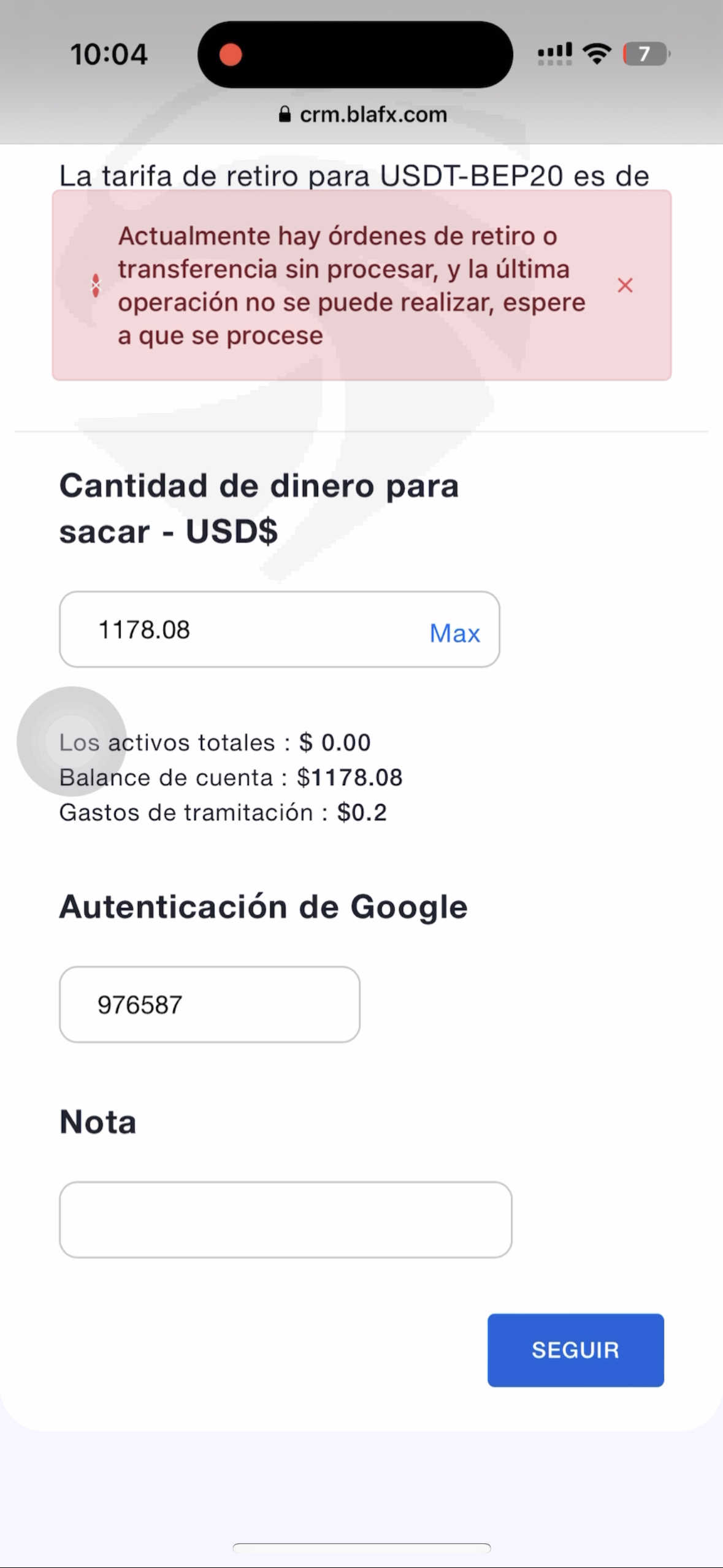 BLAFX NO PERMITE RETIRAR MI INVERSIÓN