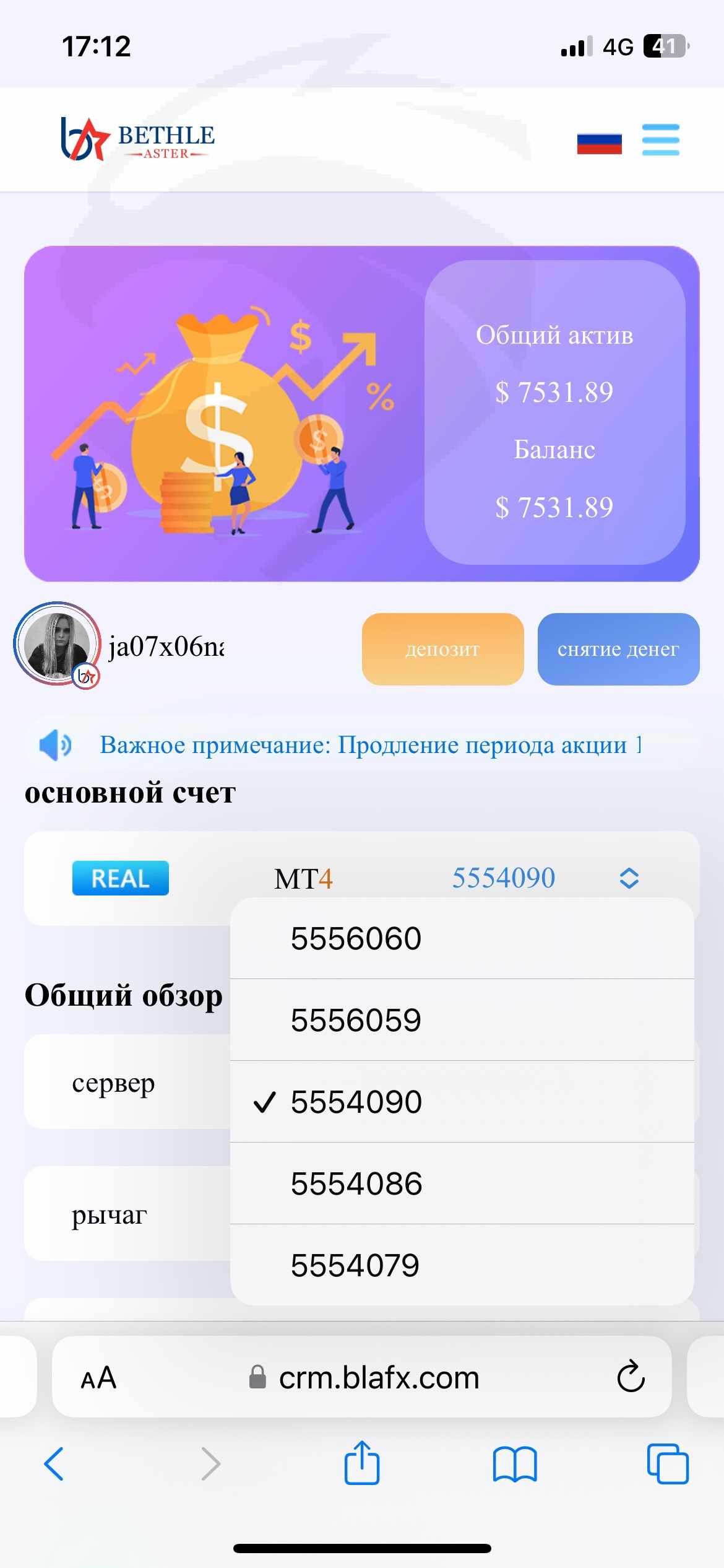 22.08.2023 на Blafx.c от прекратились торговые операции с Meta Trader 4 и заблокировал вывод средств в статусе (в настоящее время имеются необработанные заказы на вывод или перевод,