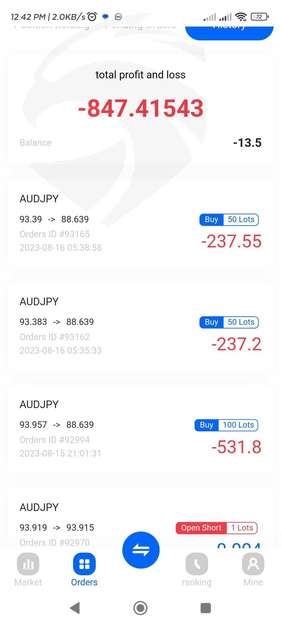 我投资了澳元/日元,突然刷新,我都账户显示负余额,所有的钱都不见了...澳元/日元在之前几个月都没到如此低价...我尝试通过邮件和平台联系,但没有收到任何回复...我所有的钱都没了,现在该怎么办呢