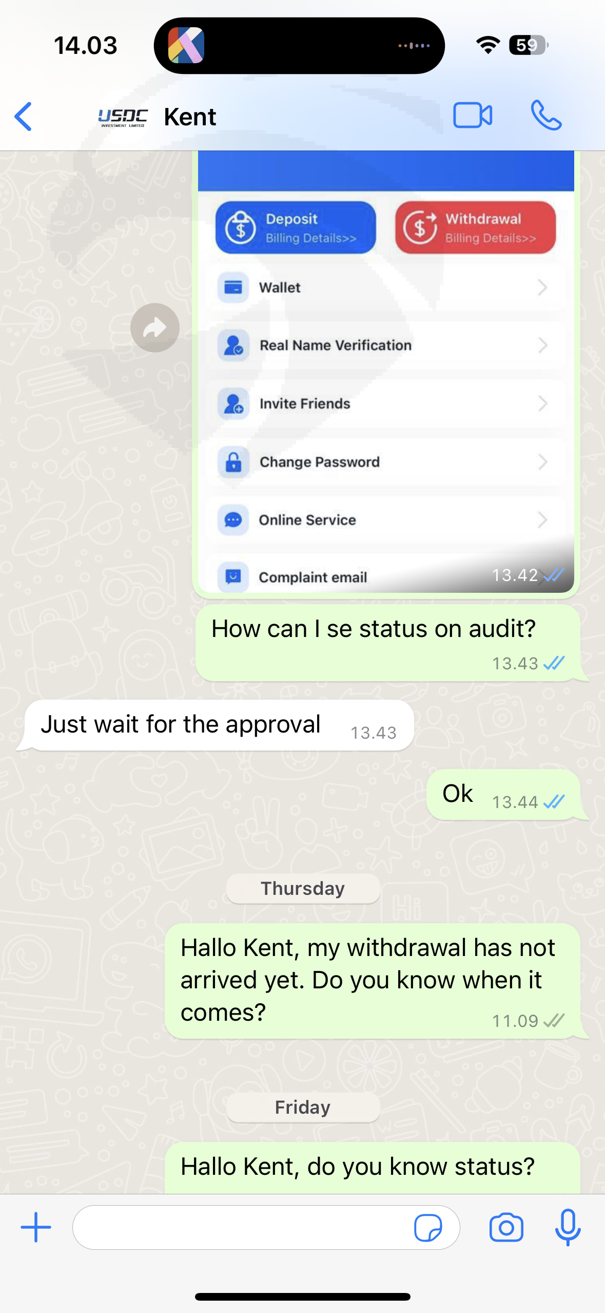 USDC是诈骗平台,在付款之后也不能出金,已经损失了3万6千多,也联系不到该平台。